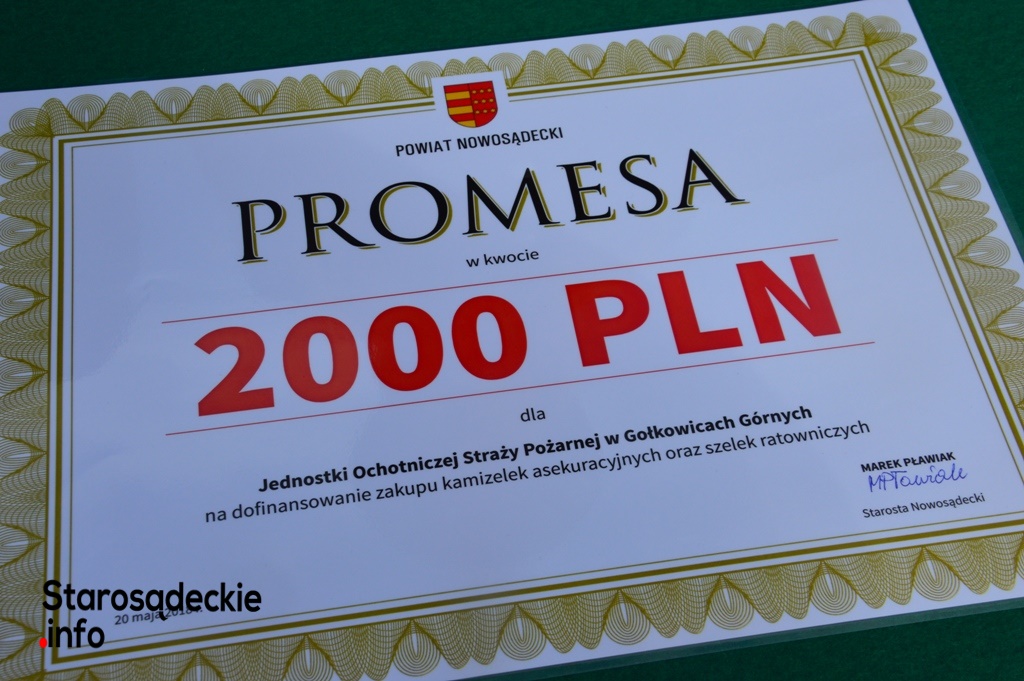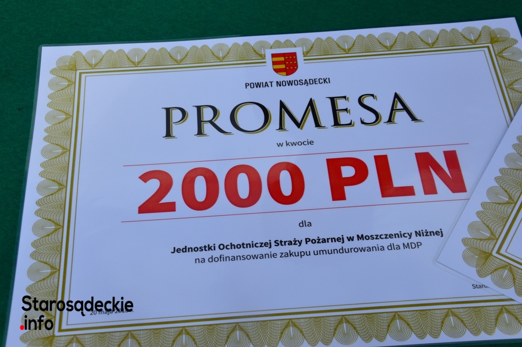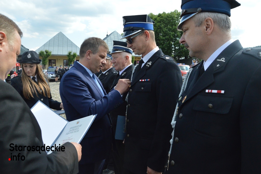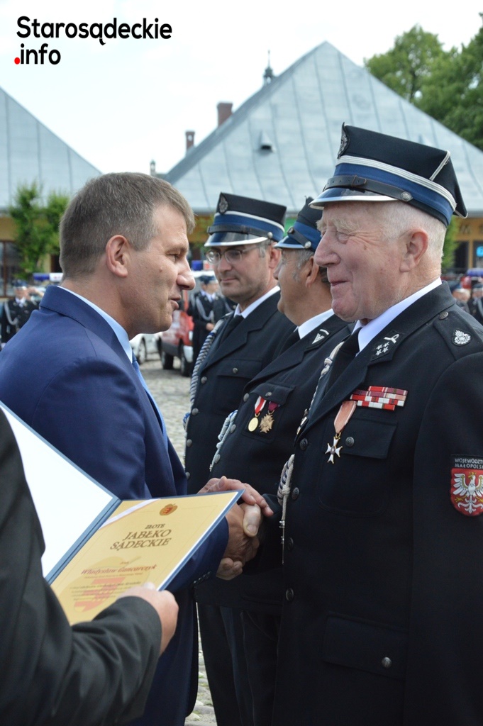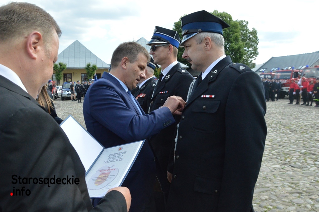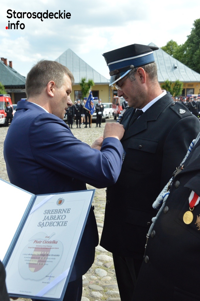 Podczs uroczystości Starosta Nowosądecki Marek Pławiak odznaczył Złotym Jabłkiem Sądeckim: druha Władysława Gancarczyka z OSP Moszczenica Niżna, a Srebrnym Jabłkiem Sądeckim druha Aleksandra Janika, Ochotnicza Straż Pożarna Gołkowice Górne, druha Dariusza Bieryta – Ochotnicza Straż Pożarna Gołkowice Górne, druha Lucjana Czajkę – Ochotnicza Straż Pożarna Stary Sącz, druha Ryszard Grucę – Ochotnicza Straż Pożarna Moszczenica Wyżna, druha Marcina Pasonia – Ochotnicza Straż Pożarna Moszczenica Wyżna druha Piotra Ciesielkę, Ochotnicza Straż Pożarna Grupa Ratownictwa Specjalnego w Nowym Sączu i druha Józefa Dyrka – Ochotnicza Straż Pożarna Biegonice. Prócz tego w imieniu starosty szef powiatowego zarządzania kryzysowego Ryszard Wąsowicz wręczył prezesom OSP z Moszczenicy Niżnej i Gołkowic Górnych promesy o wartości 2 tys.
