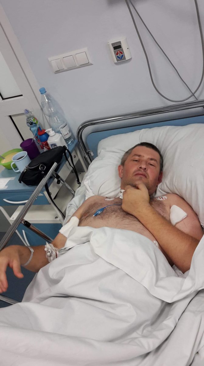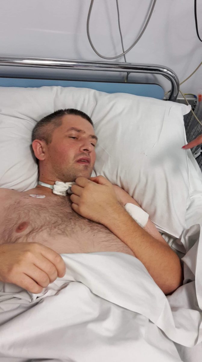 Sobota 15 września 2018 roku. Dzień, kiedy Grzegorz miał tyle planów okazał się tak koszmarny. Godzina 11:00 rano, Grzegorza zaczyna mocno boleć głowa, do tego stopnia że stracił przytomność. Został przewieziony karetką pogotowia do szpitala w Krakowie. Natychmiast zapadła decyzja o konieczności interwencji neurochirurgicznej. Grzegorz trafił na blok operacyjny. Okazało się, że doznał rozległego wylewu śródmózgowego do prawej półkuli, który mocno ucisnął pień mózgowy. Została przeprowadzona trepanacja prawostronna, obarczająca mózg. Dzięki szybkiej interwencji lekarzy Grzegorz żyje. Po operacji przebywał na Oddziale Intensywnej Terapii. Spędził tam 5 tygodni walcząc o życie. Po tygodniu od operacji został wybudzony ze śpiączki farmakologicznej… niestety nie od razu odzyskał świadomość. Wybudzenie ze śpiączki uwidoczniło poważny uraz mózgu, który objawiał się m. in. prężeniami odmóżdżeniowymi i gorączką mózgową. Dopiero po około 3 tygodniach od wylewu wszystko się unormowało i Grzegorz zaczął się z nami komunikować. Na początku mruganiem oczu, a z czasem machnięciem głową na „tak” lub na „nie”.