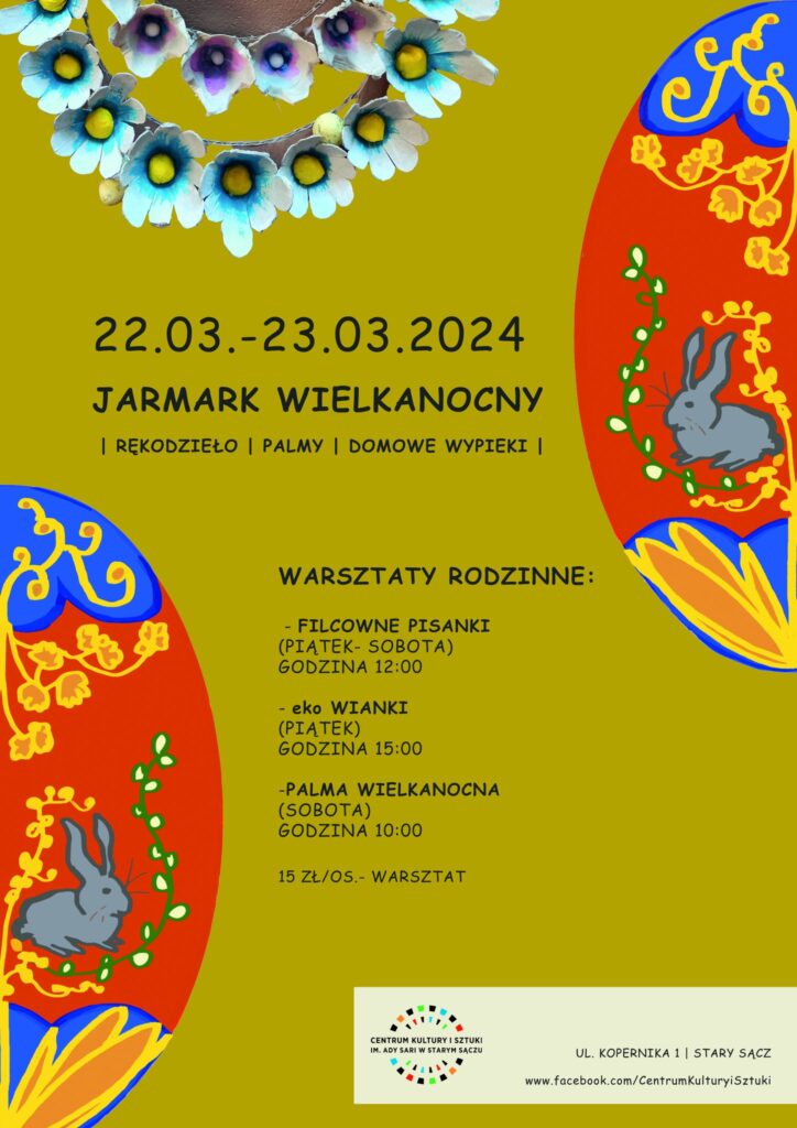 W dniach 22-23 marca w Starym Sączu odbędzie się Jarmark Wielkanocny. Jak co roku zapraszamy do Grodu św. Kingi po zakup wielkanocnego rękodzieła oraz lokalnych przysmaków. Dla odwiedzających przygotowano również warsztaty min. z dekorowania słodkich zajączków czy filcowania.