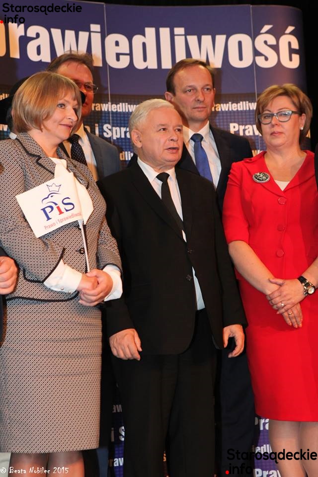 –Bez wiarygodności, bez zaufania nie można uzyskiwać tego, co jest potrzebne w każdym procesie społecznym –kontynuował prezes PIS- Tu jest potrzebna aktywność, aktywne poparcie. Zawsze będziemy trafiali na różnego rodzaju przeszkody. Ogromna część Polaków chce, by Polska się zmieniała. (…) Mętna woda musi zostać oczyszczona. My chcemy żyć! Będą czynić nam różnego rodzaju trudności, będą nas atakować, sięgać do czynników zewnętrznych i w tych momentach potrzebne jest nam poparcie oraz mobilizacja społeczna. I dopiero zmobilizowani będziemy mogli powiedzieć: my sami załatwiamy nasze sprawy, mamy do tego prawo. Jesteśmy w UE po to, żeby się szybko rozwijać. Po to UE powstała, żeby wyrównywać poziom rożnych krajów, mamy do tego święte prawo i nie wolno nam w tym przeszkadzać. UE powstała po to, by chronić wolność. Dzisiaj UE nie może być organizacją , która narzuca ograniczenia wolności. Musimy dbać o to, by UE była organizacją wolności w skali globalnej. Taka powinna być nasza misja. Mamy prawo wywierać wpływ na to, by była związkiem równych, suwerennych państw, których bogactwo tworzy wspólną jakość, jaką jest europejskość, ale europejskość nie może być przeciwstawiana polskości, bo polskości to cześć wielkiego bogactwa, jakie nosi w sobie Europa. Nasza tradycja jest częścią tej większej tradycji. Nie chcemy kwestionować tradycji innych państw, ale nikt nie ma prawa kwestionować naszej. W UE musi obowiązywać zasada równi z równymi, wolni z wolnymi. To nie jest zasada, która nie była już kiedyś znana. Ona była obecna w polskiej historii i powinniśmy wnosić ją do Europy jako zasada, która buduje. Równi z równymi, wolni z wolnymi! Czy mamy szansę na powołanie takiej władzy, która będzie te zasady wprowadzała w życie? Spójrzcie na naszego prezydenta, który z tej ziemi się wywodzi! Czy on tego nie robi? Przypomnijcie sobie jego wizytę w Nowym Jorku, jak pięknie potrafił się zachować, jak wspaniale potrafił przemawiać. By mógł realizować swoje plany, potrzebny jest rząd. Rząd, który mu to umożliwi, taki rząd z Beatą Szydło, która znakomicie współpracuje z Andrzejem Dudą, powinien zostać powołany. Trzeba wygrać nie tylko z PO, ale z wszystkimi, którzy biegną jej na pomoc. Oni gryzą, ale to pozorne gryzienie, chcą podtrzymać to, co jest chorobą. Tylko pełne zwycięstwo nas interesuje! (…) Damy radę, proszę państwa! Jeszcze 3 tygodnie wysiłku, jeszcze 3 tygodnie zwracania się do każdego z państwa, do sąsiadów, do znajomych, do przyjaciół, do rodziny, do kolegów i koleżanek. Głosujcie na listę nr 1, to przyszłość dla Polski, to naprawdę pierwsze miejsce!