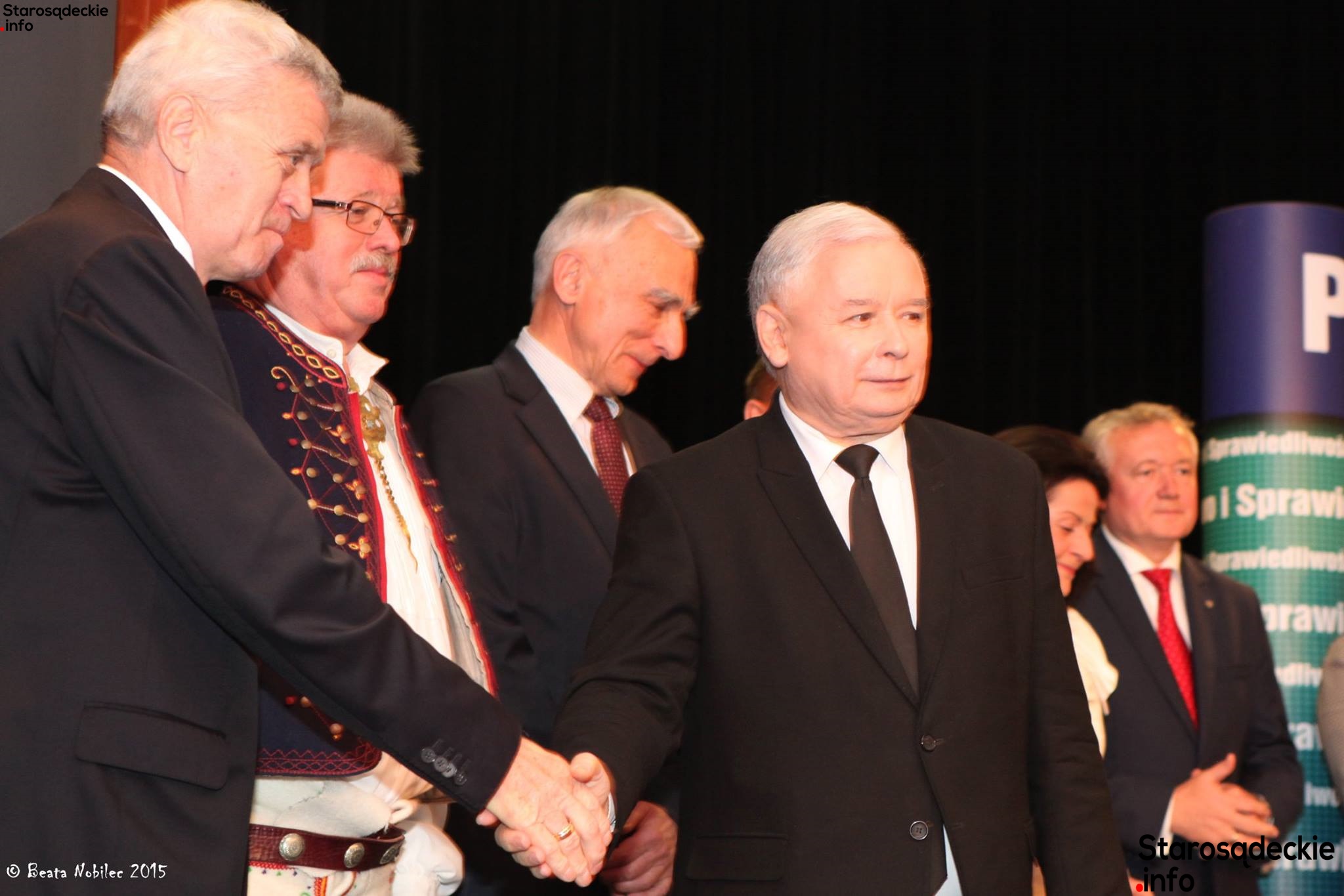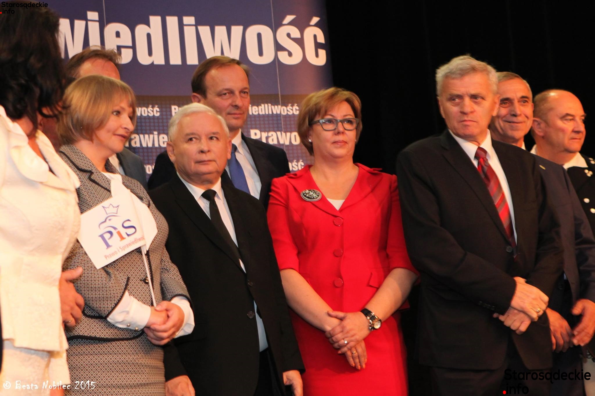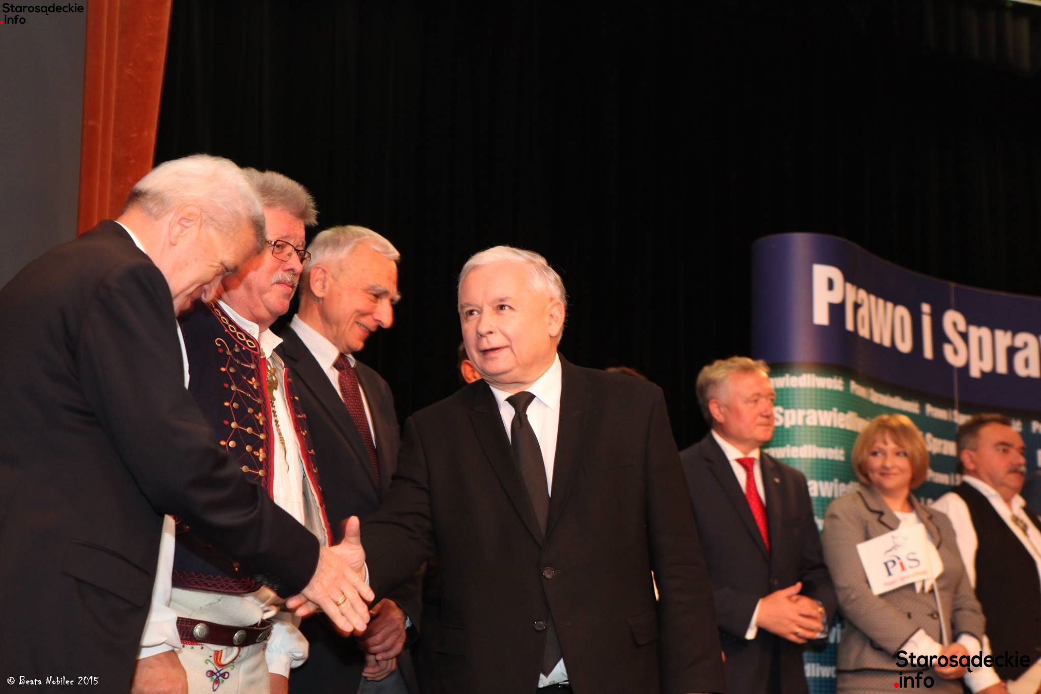 –W ostatnich latach przyjeżdżam do Nowego Sączu,a bywam tutaj często. Mam poczucie głębokiej satysfakcji. To miejsce w Polsce, które się znakomicie rozwija. Bardzo bym chciał, by Polska w całości rozwijała się tak jak Nowy Sącz. (…) –mówił Jarosław Kaczyński -Bardzo dobrze by było, żeby wielu mieszkańców tej ziemi znalazło się w parlamencie. Chcę powiedzieć, że to bardzo mocna lista, naprawdę bardzo mocna lista. To doświadczeni działacze, którzy jak Piotr Naimski mają już dziesięciolecia pracy politycznej. (…) O to zwycięstwo trzeba ciągle walczyć, ciągle pracować, ono nie przyjdzie samo. PO jest dziś reprezentantem pełnego wad systemu. Cofa się, ale ma coraz więcej różnych pomocników, różnych mniejszych partii, które rzuciły się po to, żeby temu pomóc. Ten system marnuje nasz potencjał, a Nowy Sącz pokazuje, że ten potencjał jest wielki. Musimy pokonać ich wszystkich, musimy przekonać naszych rodaków, że jedyna stawka, na którą warto głosować to PiS. To partia, która jeśli będzie mogła rządzić samodzielnie, stworzy znakomity rząd pod przewodnictwem Beaty Szydło. Powtarzam: musimy uczynić bardzo wiele, by to zwycięstwo, nasze zwycięstwo, było zwycięstwem pełnym, żebyśmy mieli znacznie więcej niż 231 mandatów. To jest nam potrzebne, byśmy mogli pójść szybko do przodu. By to, co w naszym życiu jest złe było już za nami. Byśmy mogli iść w górę bez opóźnień. Ten marsz może nam w stosunkowo niewielkim czasie przynieść ogromne sukcesy, by Polak wyjeżdżający za granicę mógł powiedzieć: „Tam jest dobrze, ale u nas jest tak samo”. (…) Potrzebna jest naprawa naszego aparatu państwowego, potrzebne jest lepsze zorganizowanie władzy wykonawczej, rządu, potrzebna jest reforma sądownictwa i służb mundurowych, potrzebna jest reforma polskiej dyplomacji, potrzebna jest reforma Skarbu Państwa. Potrzebne jest zgromadzenie wielkiego kapitału, który może być uruchomiony i być podstawą wielkiego programu.