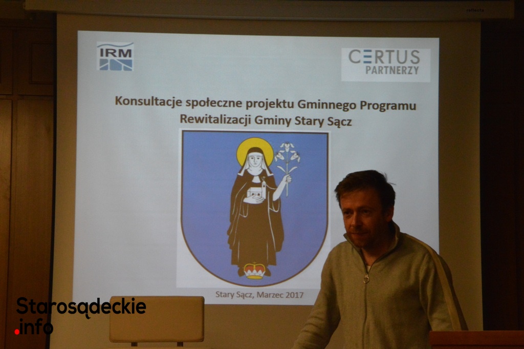 Wczorajsze konsultacje społeczne w sprawie gminnego programu rewitalizacji dla miasta Starego Sącza zakończyły się porażką. Mimo, iż było to spotkanie otwarte dla mieszkańców, przyszły 3 osoby w tym radny Osiedla Śródmieście Sławomir Szczepaniak. W spotkaniu wziął udział wiceburmistrz Kazimierz Gizicki i Piotr Dyrek, koordynator projektu z ramienia Urzędu Miejskiego. Prezentacji projektu dokonali przedstawiciele Instytutu Rozwoju Miast.