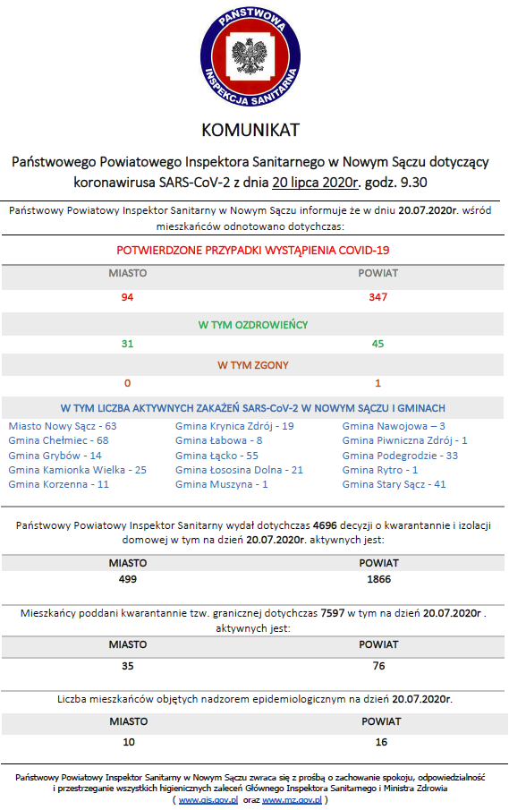 Otrzymaliśmy informację z WSSE w Krakowie o zdublowaniu jednej osoby we wcześniejszych raportach – raport skorygowano.