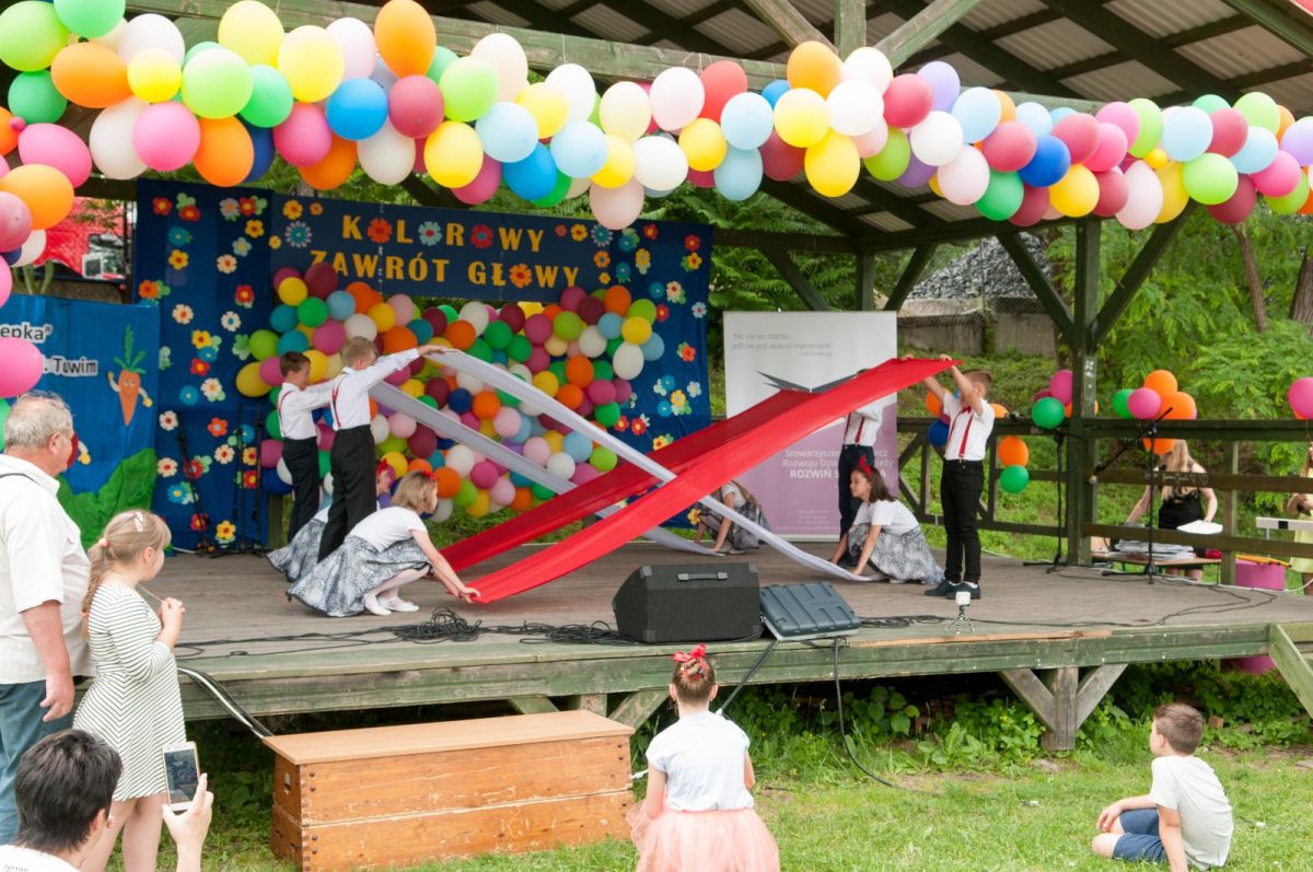 Z okazji Dnia Dziecka, w niedzielę 27 maja 2018 odbył się festyn rodzinny pod hasłem „Kolorowy zawrót głowy”. Zabawa rozpoczęła się o godzinie 14:00 od powitania wszystkich zgromadzonych przez organizatorów czyli przedstawicieli Stowarzyszenia „Rozwiń Skrzydła” i Dyrektora Szkoły Podstawowej w Barcicach, a także honorowego członka Stowarzyszenia ks. Andrzeja Kędrynę. Życzenia dobrej zabawy złożyli też Burmistrz Starego Sącza Pan Jacek Lelek i Zastępca Burmistrza Pan Kazimierz Gizicki.