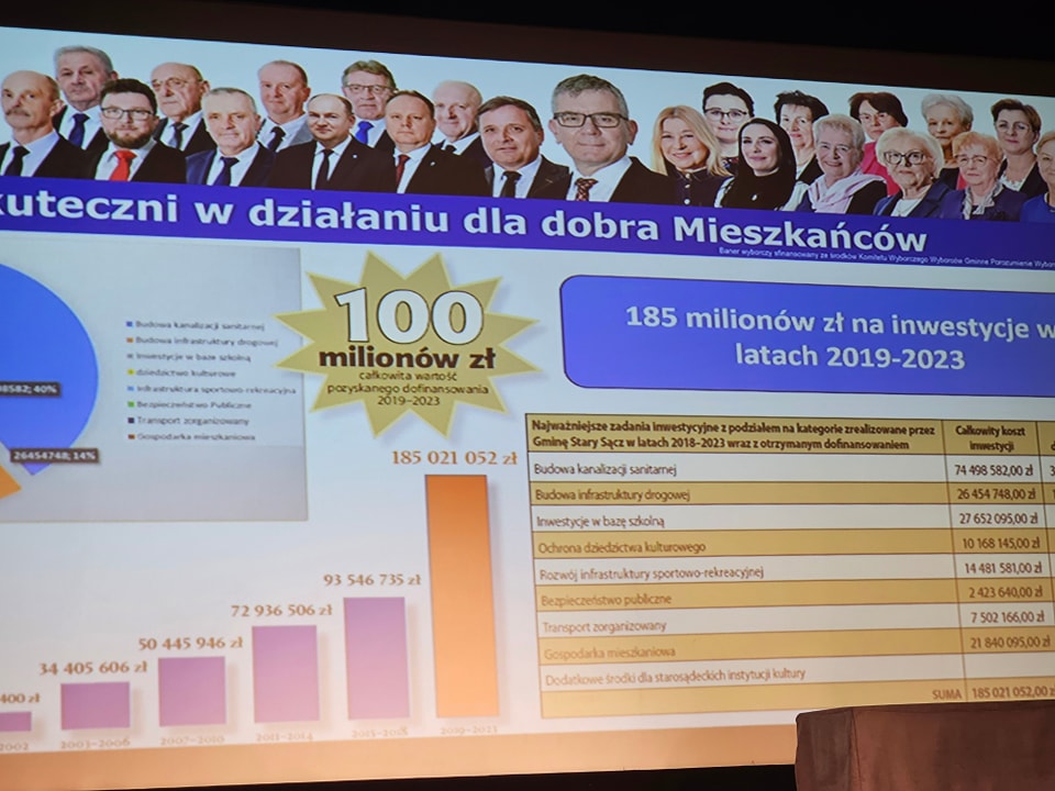 -To się są puste hasła, my nie rzucamy słów na wiatr mówił burmistrz Jacek Lelek jesteśmy gwarantem rozwoju Miasta i Gminy Stary Sącz. Jesteśmy gwarantem zmian. Stary Sącz pod naszymi rządami się zmienia. Żebyśmy mogli kontynuować obecne działania i realizować nowe to potrzebne jest Państwa wsparcie. Potrzebny jest wybór burmistrza i wspierającej rady. To jest bardzo ważne, żebyśmy wszyscy poszli na wybory 7 kwietnia.