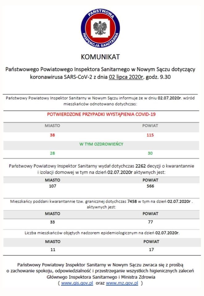 Potwierdzono już 41 przypadków zakażenia u uczestników wesela, organizowanego w Boże Ciało (11 czerwca) w lokalu w Nawojowej, oraz u osób, które miały z nimi kontakt. Co więcej, w związku z tą sytuacją na kwarantannie przebywa obecnie niemal 240 osób.