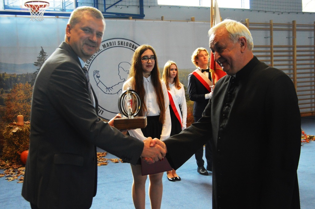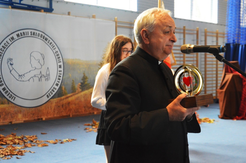 Statuetka w postaci atomu symbolizująca patronkę szkoły została specjalnie zaprojektowana dla starosądeckiego „ogólniaka”. Ks Marek Tabor nie krył wzruszenia. Posłuchajcie….