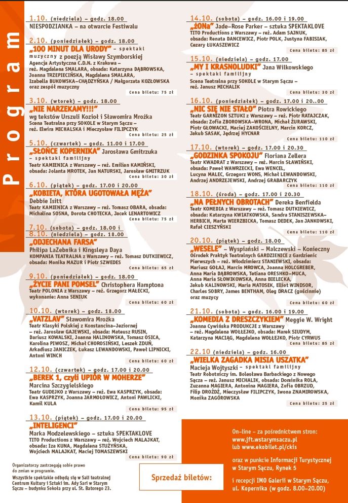 Prezentujemy szczegółowy program 27. Jesiennego Festiwalu Teatralnego w Starym Sączu.