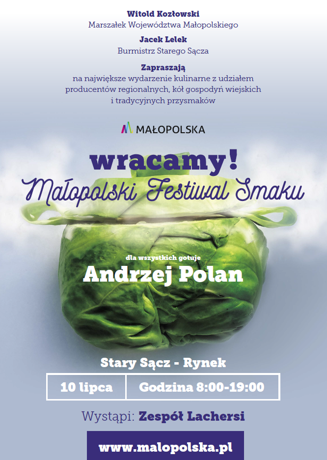 Wielkimi krokami zbliżają się kolejne kulinarne imprezy Małopolskiego Festiwalu Smaku. To wyjątkowe wydarzenie, które na stałe zagościło w kalendarzu najważniejszych i największych wydarzeń kulinarnych w Polsce. 10 lipca impreza odbędzie się na Rynku w Starym Sączu.