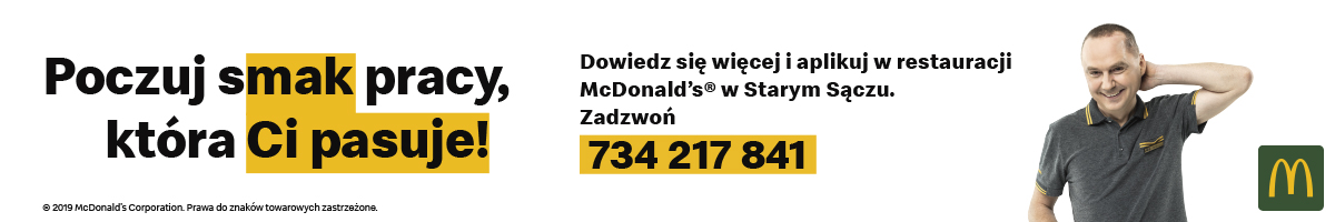 Sieć restauracji McDonald’s rozpoczęła rekrutację pracowników do nowej placówki, która własnie powstaje w Starym Sączu. Firma poszukuje pracowników zarówno na dzienną jak i nocną zmianę a także konserwatora.