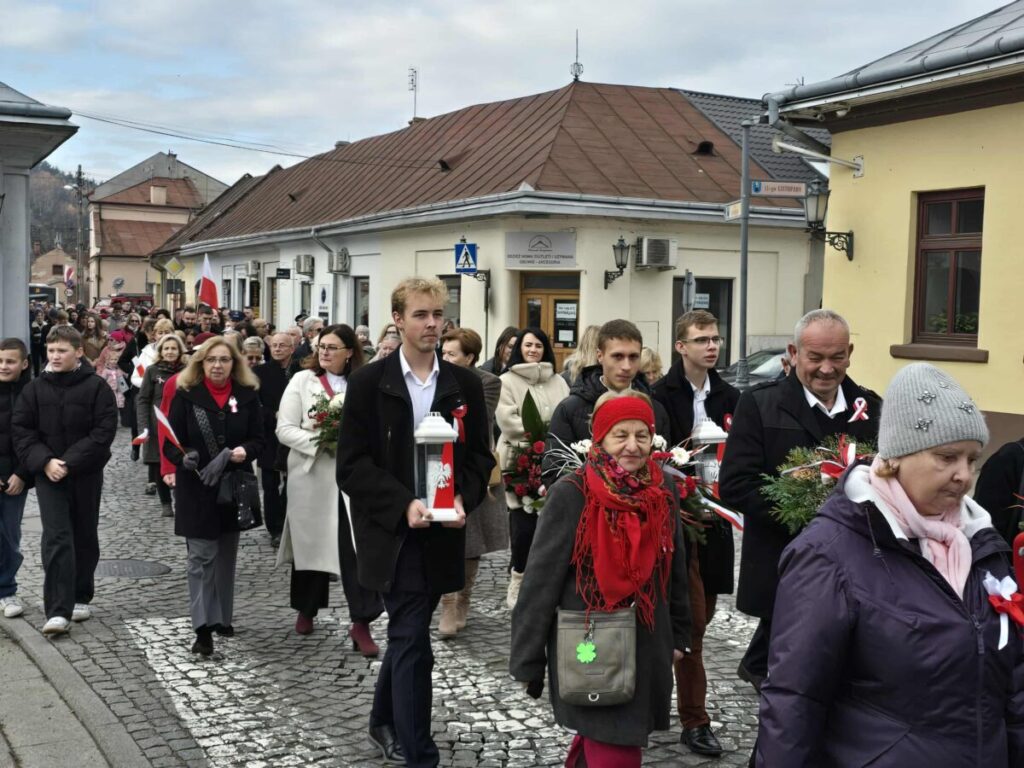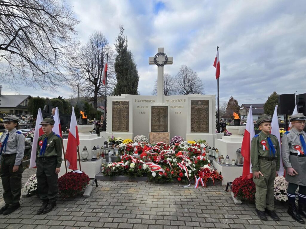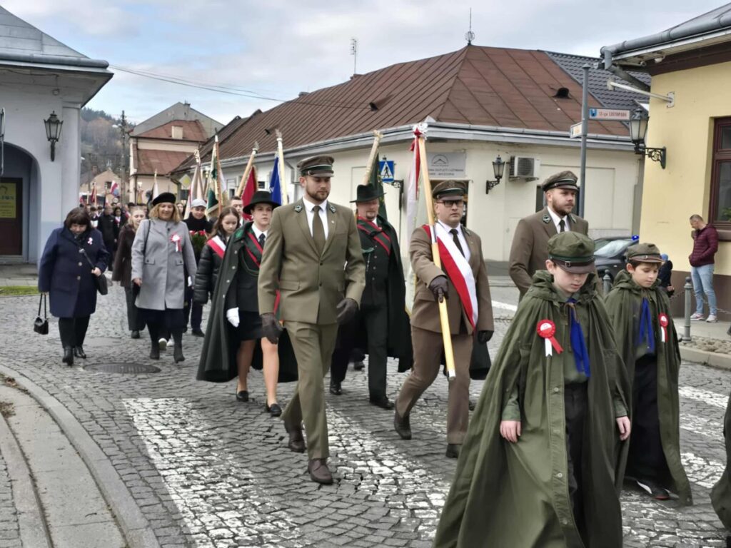Barwny pochód z pocztami sztandarowymi, prowadzony przez Miejską Orkiestrę Starego Sącza, przeszedł trasą od „Sokoła” przez Rynek, do kościoła św. Elżbiety, a następnie na nowy cmentarz komunalny. Tam zabrzmiała pieśń Rota, po której ks. Marek Tabor poprowadził modlitwę w intencji poległych za Ojczyznę.