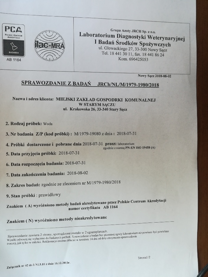 Sanepid, Wojewódzki Inspektorat Ochrony Środowiska czy nawet w Sądeckich Wodociągach bo oni wykonują takie badania !!!