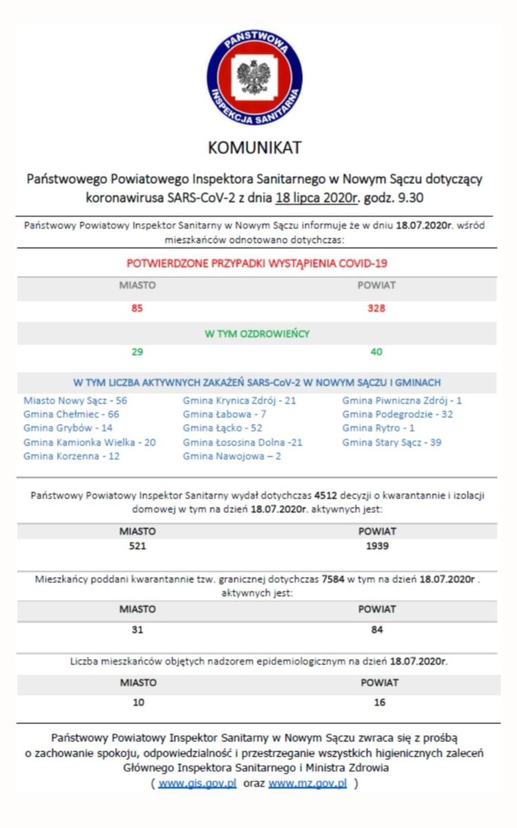 Gmina Stary Sącz – 39 (+11 od wczoraj)