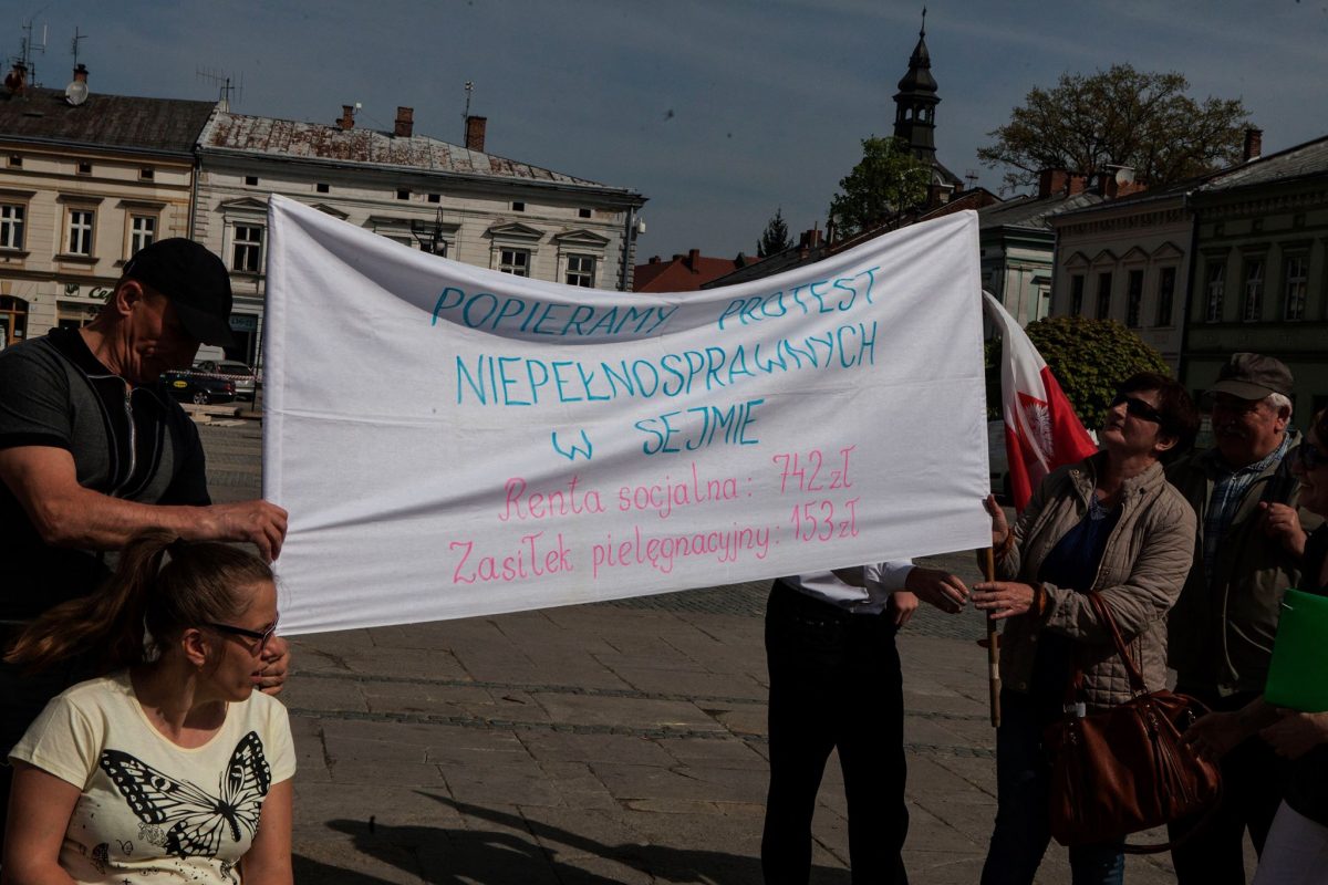 Dzisiaj (25 kwietnia) na sądeckim rynku pikietowali rodzice, opiekunowie dorosłych osób niepełnosprawnych i sami niepełnosprawni. W ten sposób postanowili wesprzeć protestujących w Sejmie. Domagają się podniesienia zasiłku pielęgnacyjnego i podniesienia renty socjalnej do najniższej krajowej.