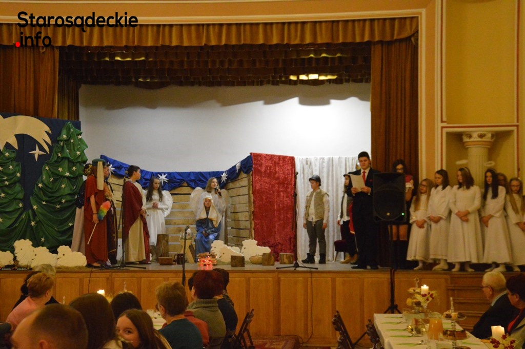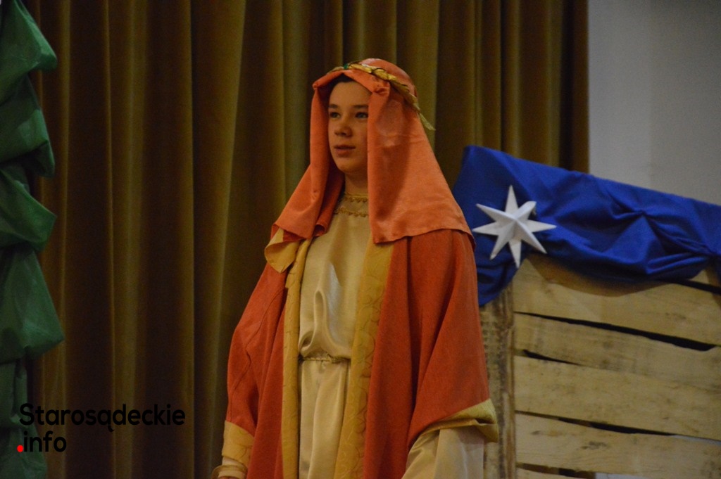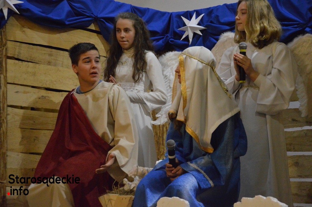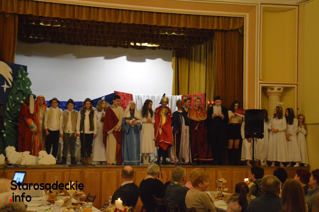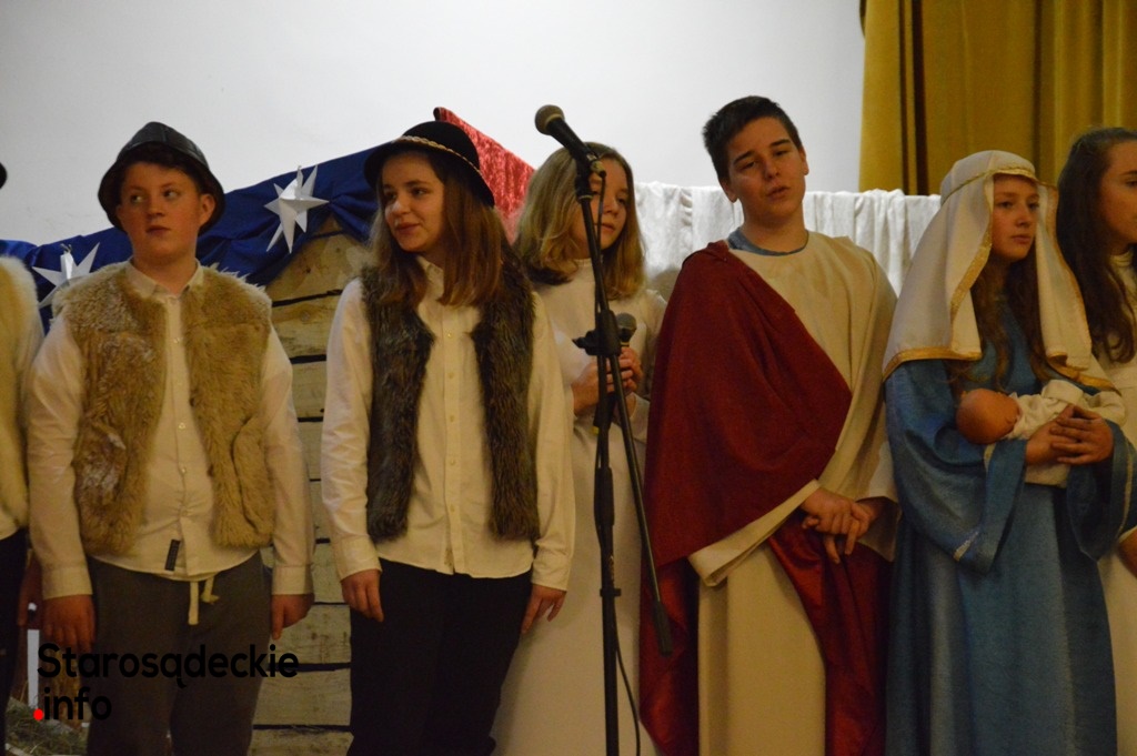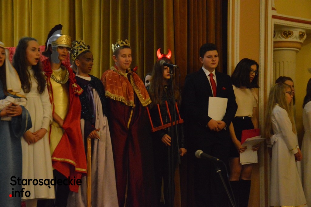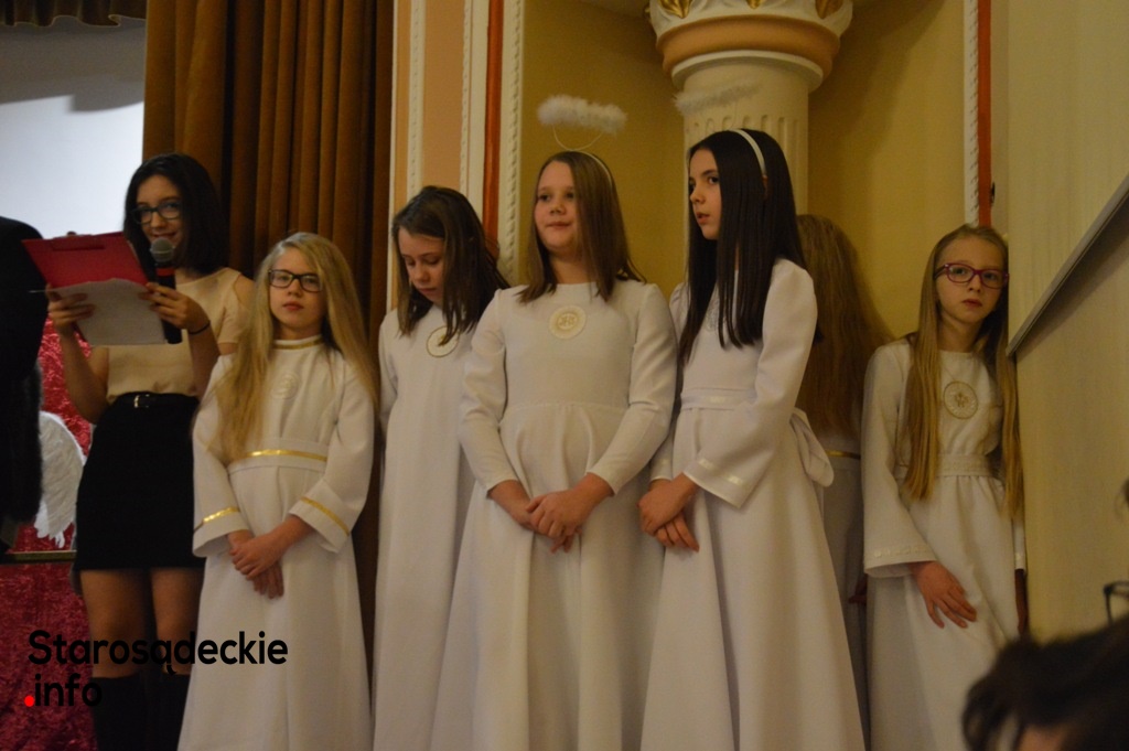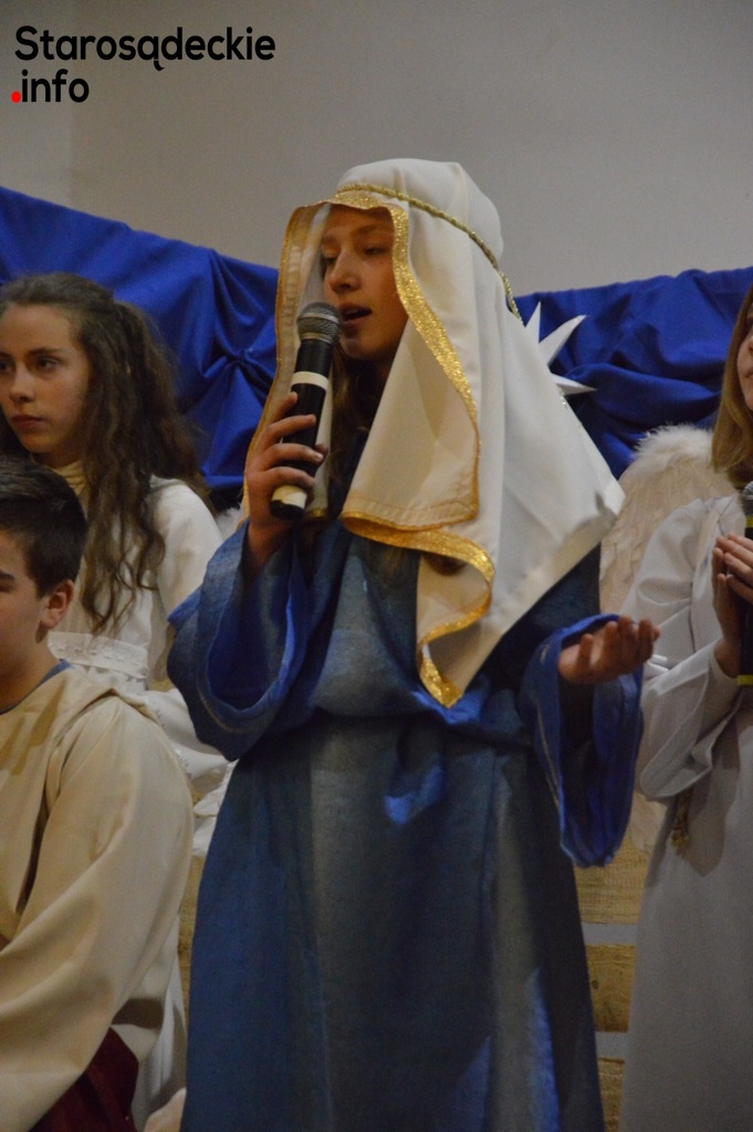 Na początku uczniowie klasy 7b i 7c ze Szkoły Podstawowej nr 2 im. Juliusza Słowackiego przedstawili ,, Jasełka na wesoło”. Na scenie można było dostrzec Maryję, Józefa, pastuszków, anioły, Trzech Króli, Jagnę, Hetmana, Heroda oraz diabły. Inicjatorkami przedstawienia były pani Agata Kurowska oraz pani Małgorzata Wąchała. Aktorzy za ciężką pracę i czas poświęcony na stworzenie spektaklu zostali nagrodzeni gromkimi brawami oraz licznymi uśmiechami. Obstawę muzyczną stanowiły czwartoklasistki oraz dwóch uczniów gimnazjum.