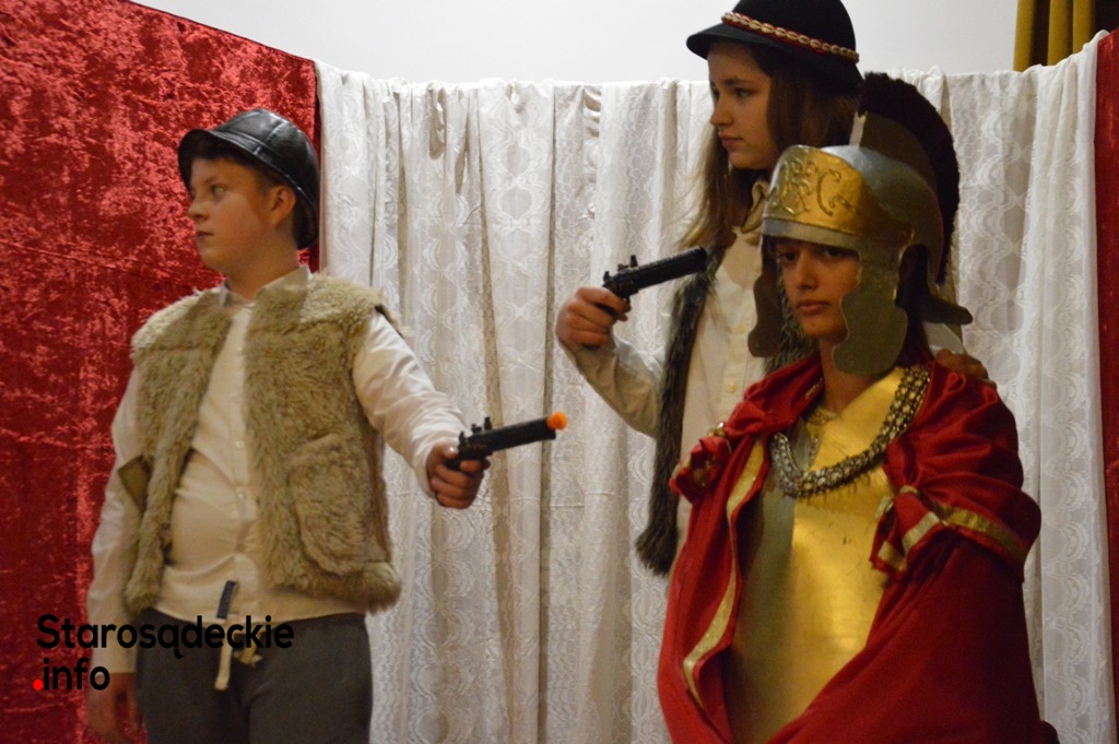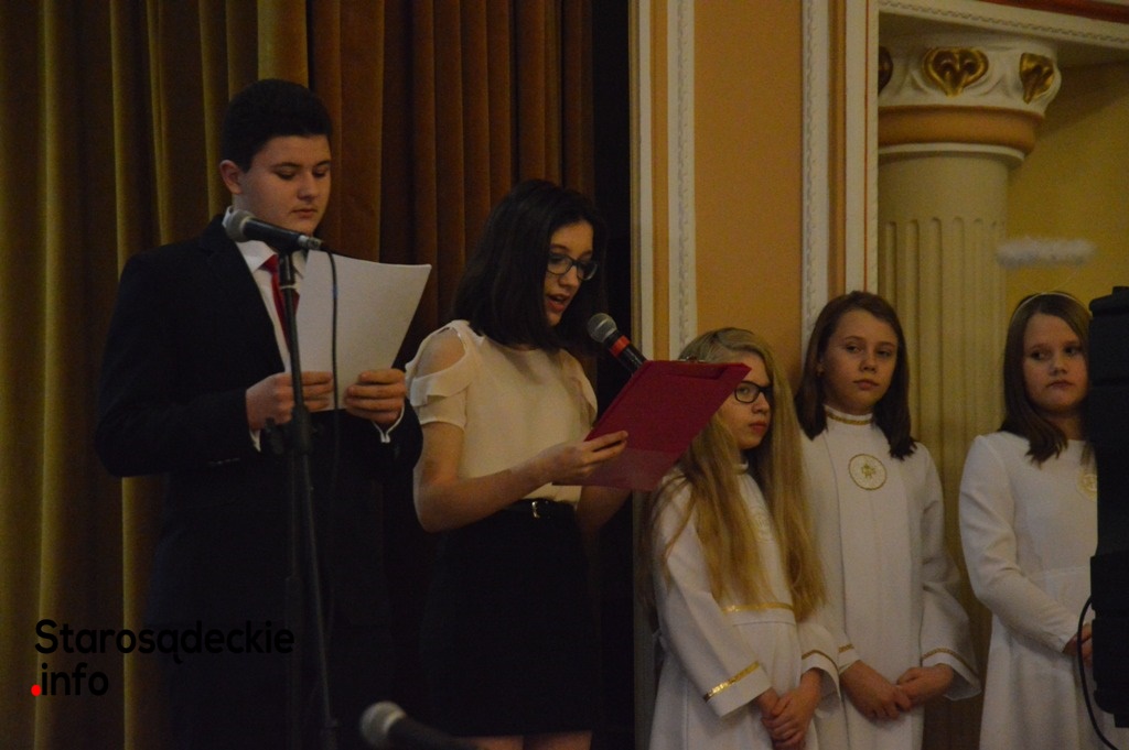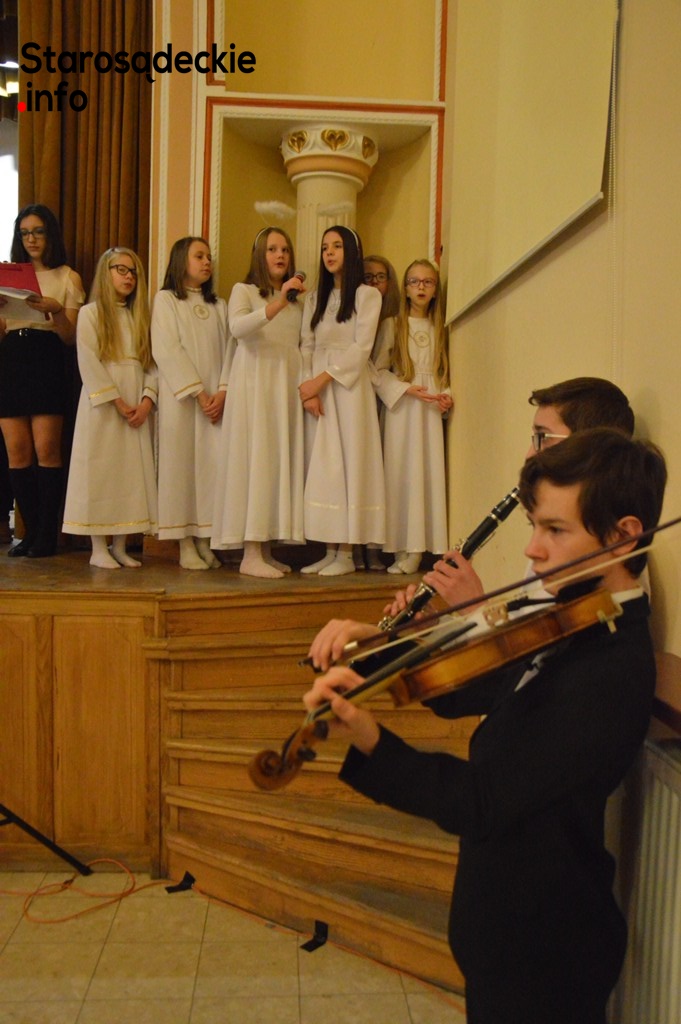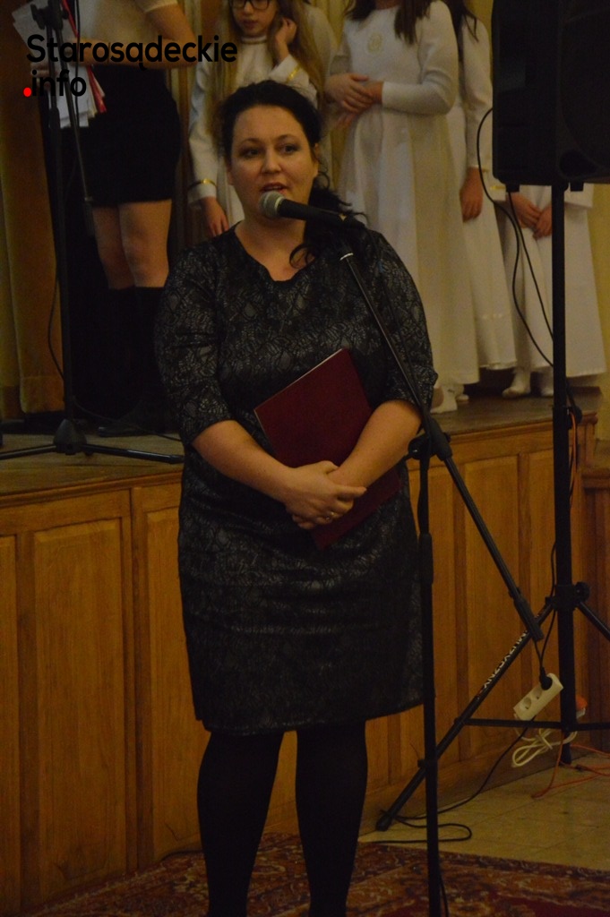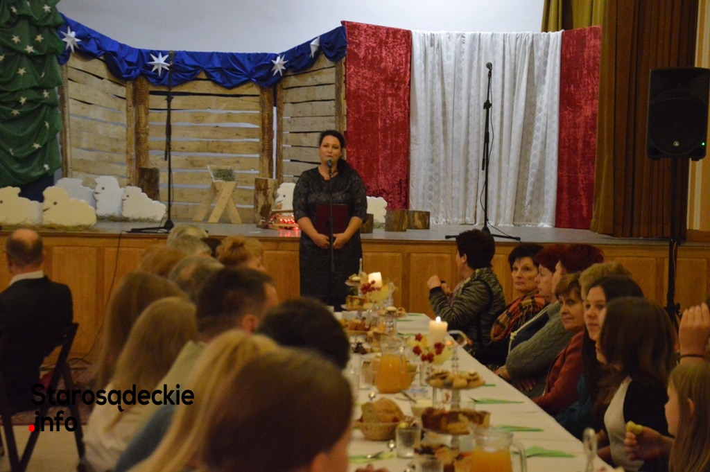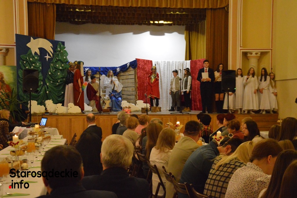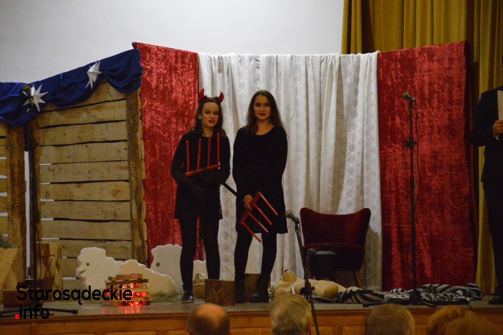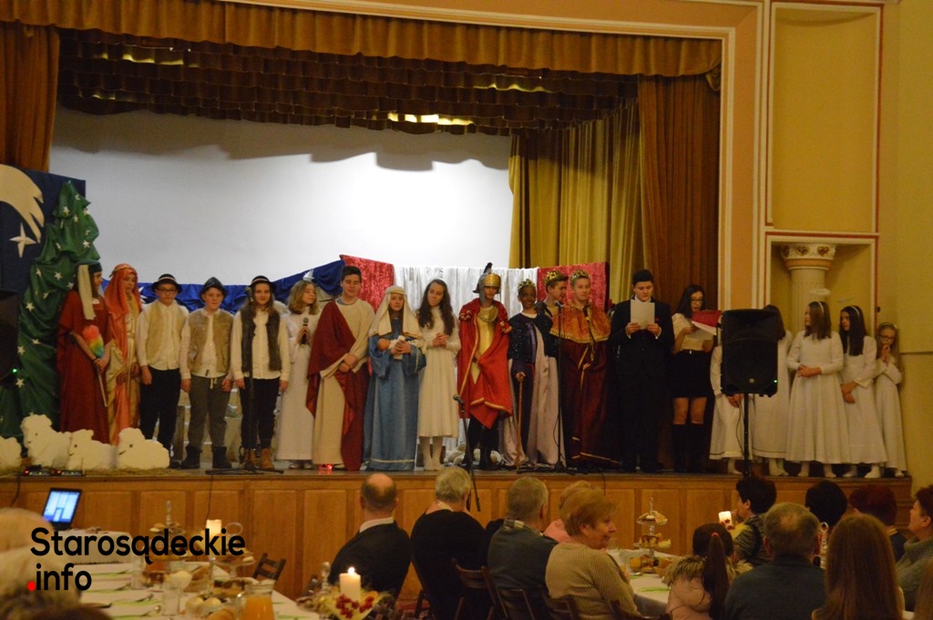 Na początku uczniowie klasy 7b i 7c ze Szkoły Podstawowej nr 2 im. Juliusza Słowackiego przedstawili ,, Jasełka na wesoło”. Na scenie można było dostrzec Maryję, Józefa, pastuszków, anioły, Trzech Króli, Jagnę, Hetmana, Heroda oraz diabły. Inicjatorkami przedstawienia były pani Agata Kurowska oraz pani Małgorzata Wąchała. Aktorzy za ciężką pracę i czas poświęcony na stworzenie spektaklu zostali nagrodzeni gromkimi brawami oraz licznymi uśmiechami. Obstawę muzyczną stanowiły czwartoklasistki oraz dwóch uczniów gimnazjum.