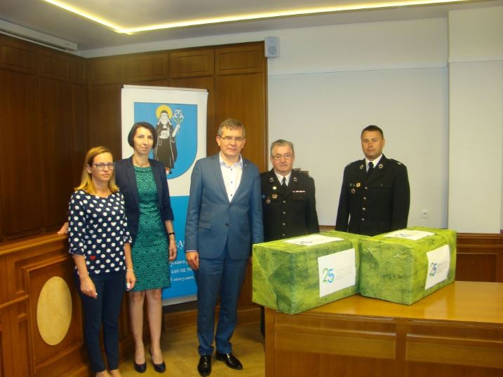 W środę 18 lipca br. w Urzędzie Miejskim w Starym Sączu odbyło się spotkanie, w trakcie którego burmistrz Jacek Lelek przekazał OSP w Gaboniu dwa aparaty powietrzne z maską panoramiczną, sygnalizatorem bezruchu oraz pokrowcem na butlę, o wartość 9639,76 zł. Aparaty odebrał wiceprezes OSP Gaboń Jan Kamiński w obecności komendanta gminnego Związku Ochotniczych Straży Pożarnych Rzeczypospolitej Polskiej Pawła Banacha i kierownika Referatu Spraw Obywatelskich Urzędu Miejskiego w Starym Sączu Joanny Orłowskiej.