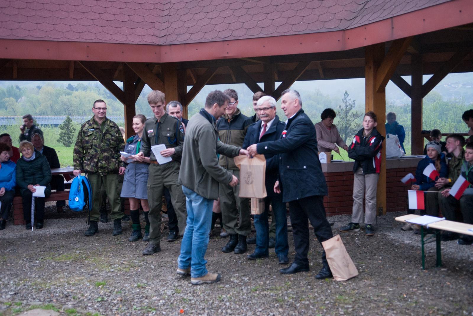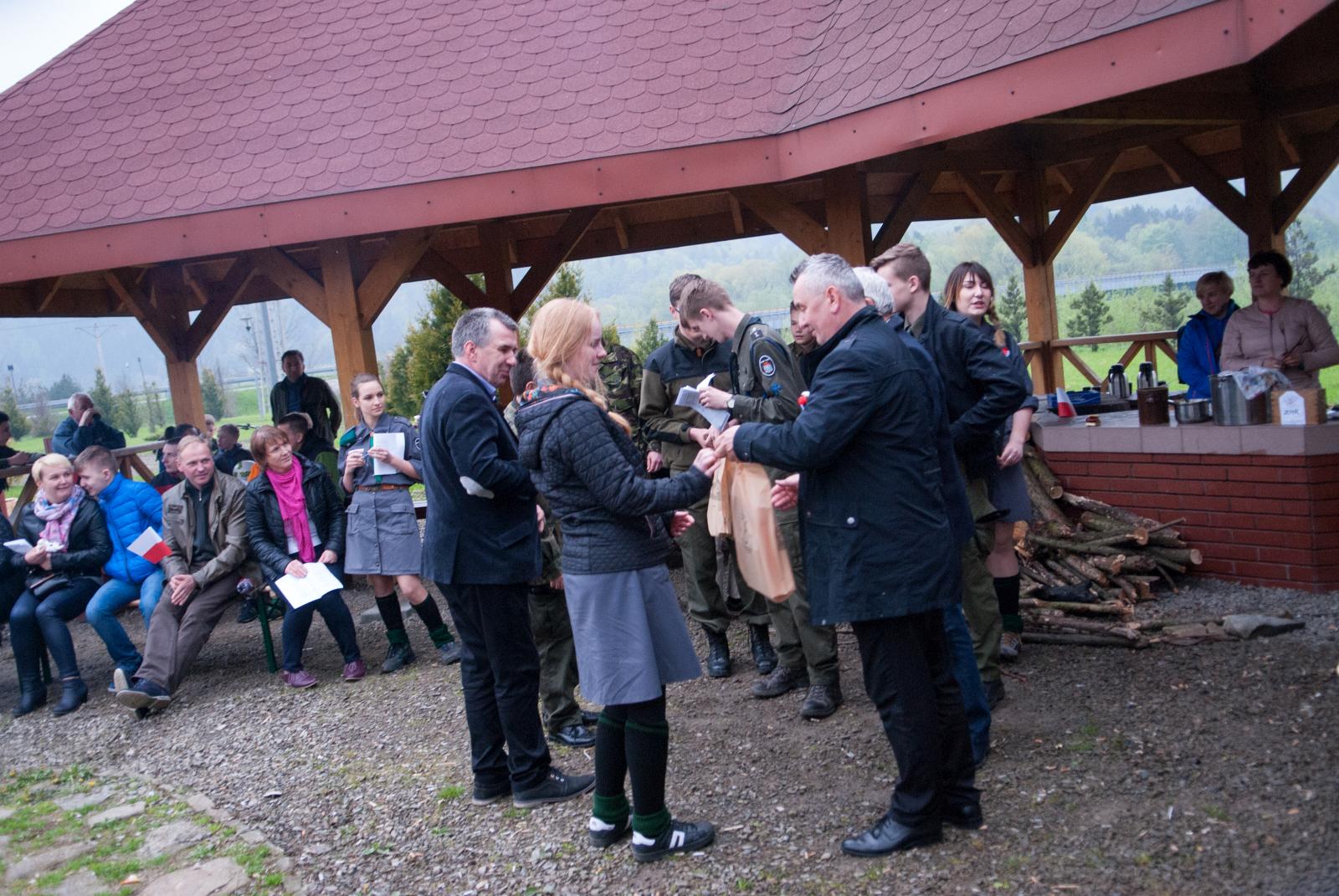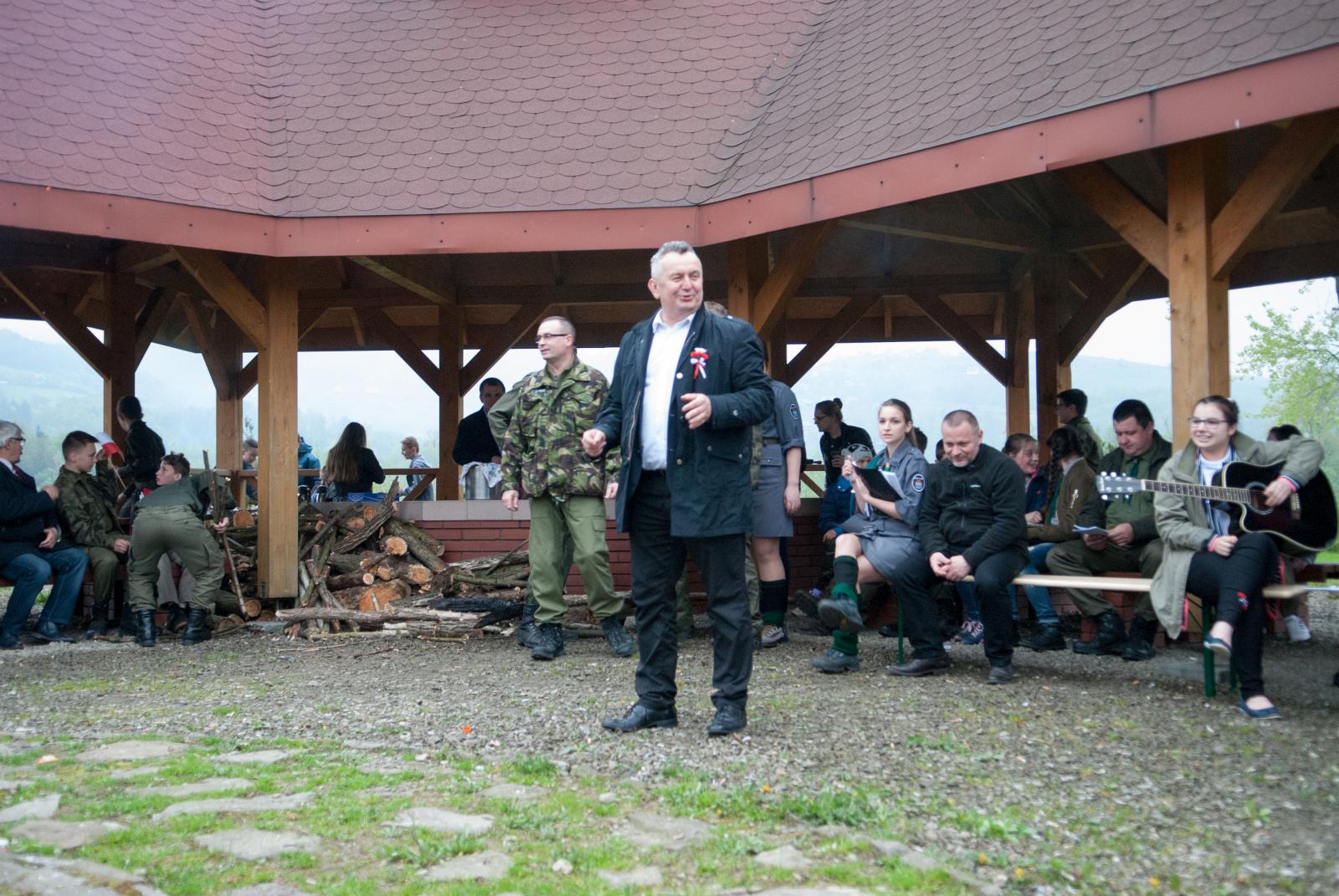 Po części oficjalnej uczestnicy udali się do Przystani Rowerowej w Barcicach, gdzie przy harcerskim ognisku mogli posłuchać okolicznościowej wypowiedzi zastępcy burmistrza Starego Sącza pana Kazimierza Gizickiego nawiązującej do historii Konstytucji. Dzięki druhowi Maksymilianowi Tomasiakowi przy dźwiękach gitary zebrani mieli okazję poczuć ducha polskości śpiewając patriotyczne, żołnierskie i harcerskie pieśni. Dzięki wsparciu Rodziców harcerzy i harcerek oraz Stowarzyszenia Mieszkańców Barcic wszyscy mogli skorzystać z darmowego poczęstunku – tradycyjnych specjałów, pieczonych kiełbasek, słodkich wypieków oraz gorącej herbaty.