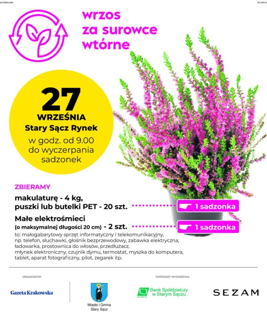 Oddaj odpady – odbierz wrzos! Jesienna akcja ekologiczna w Starym Sączu