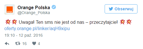 Orange ostrzega klientów przed przekrętem, w którym „haczykiem” jest informacja o rzekomym włączeniu płatnej usługi premium. Przestępcy liczą, że wielu odbiorców odruchowo wyśle sugerowaną wiadomość i tym samym narazi się na dodatkowe koszty. Tymczasem niesławny numer 925xx to koszt 25zł (30,75zł brutto).