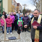 Na placu zlokalizowanym w sąsiedztwie z boiskiem i placem zabaw zgromadzili się mieszkańcy, burmistrz Jacek Lelek, przewodniczący Osiedla Marcin Szmigiel wraz z Zarządem, radna Osiedla Julia Dziedzic , radny Osiedla Śródmieście Sławomir Szczepaniak oraz ks proboszcz Janusz Ryba, który poświęcił nowo powstały obiekt.