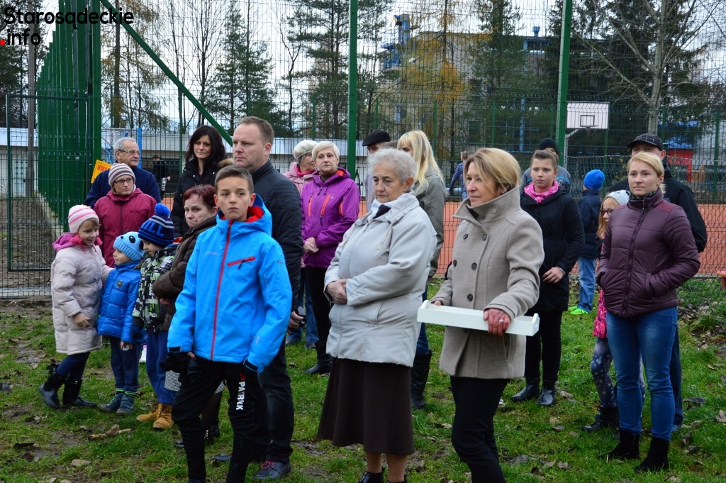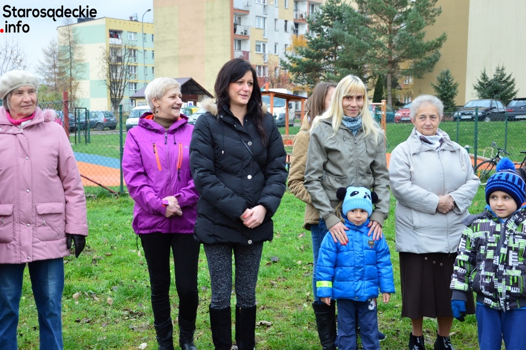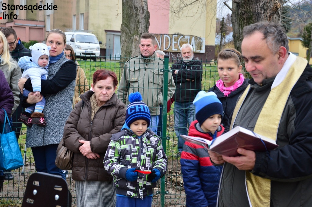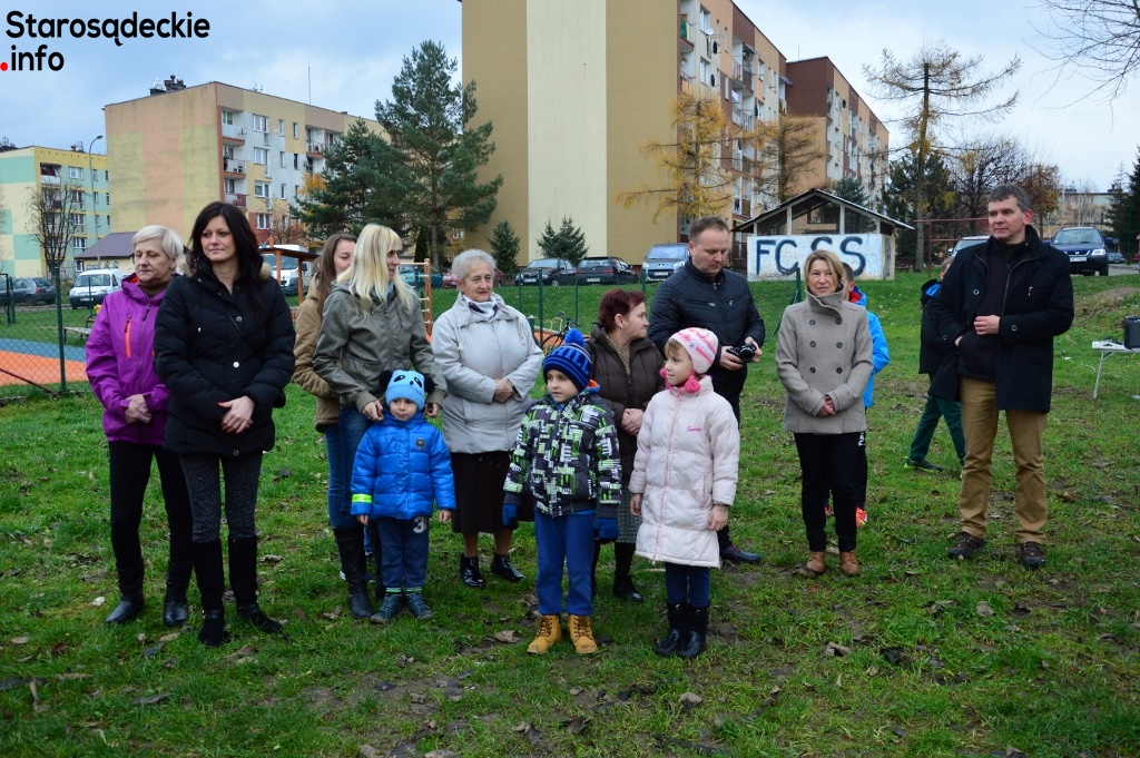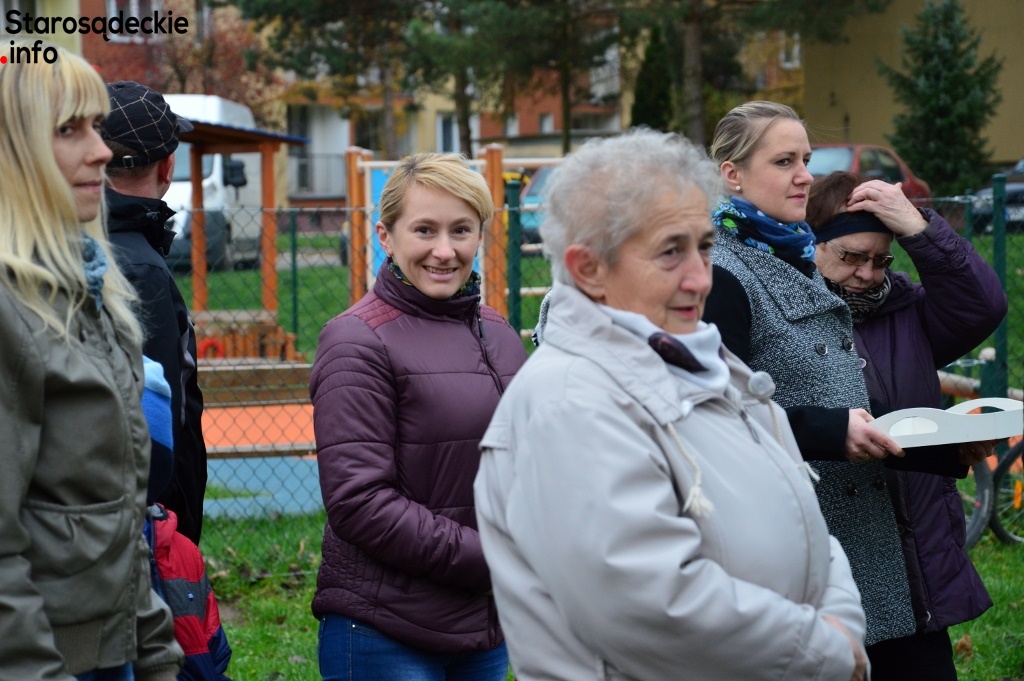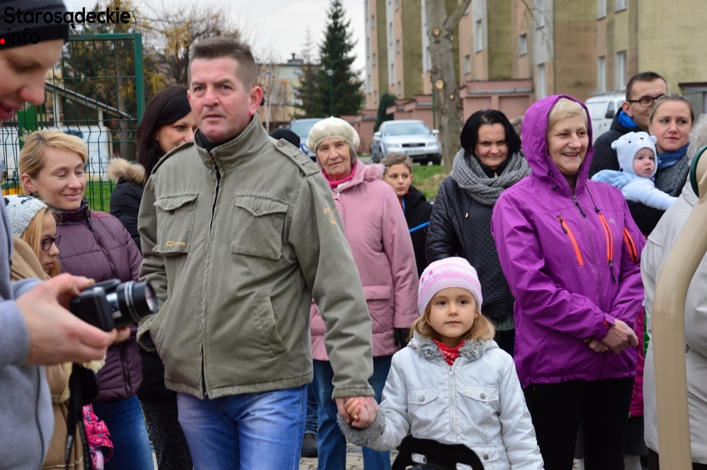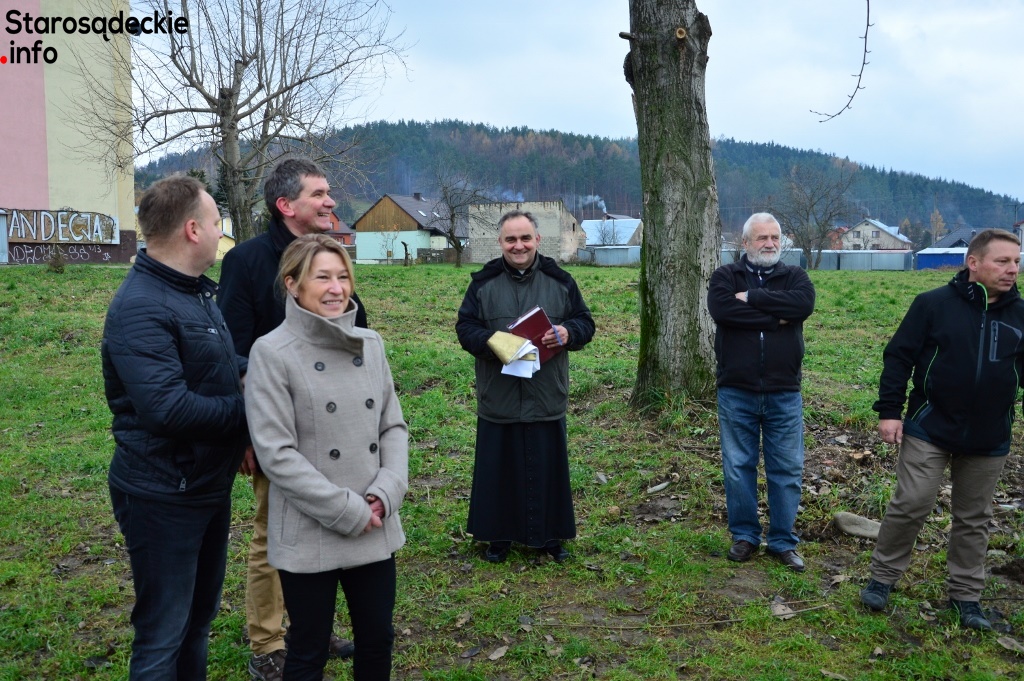 Na placu zlokalizowanym w sąsiedztwie z boiskiem i placem zabaw zgromadzili się mieszkańcy, burmistrz Jacek Lelek, przewodniczący Osiedla Marcin Szmigiel wraz z Zarządem, radna Osiedla Julia Dziedzic , radny Osiedla Śródmieście Sławomir Szczepaniak oraz ks proboszcz Janusz Ryba, który poświęcił nowo powstały obiekt.