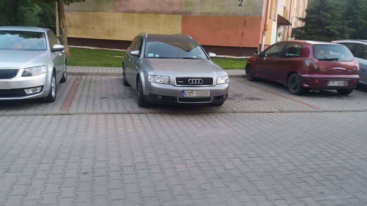 Kierowca tego Audi koniecznie musi wziąć sobie do serca skargi na niedostatek miejsc parkingowych w mieście. Apelujemy o rozsądek.