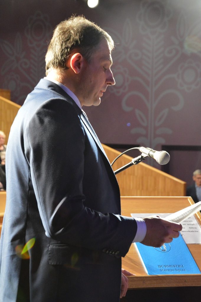 „Panie Burmistrzu, Panie i Panowie Radni, gratuluję Państwu tego, że to właśnie Wam mieszkańcy powierzyli gminę Stary Sącz na najbliższe pięć lat. To sukces, ale przede wszystkim ogromne zobowiązanie. Zostaliście Państwo obdarzeni przez naszą społeczność dużym zaufaniem, ale musicie pamiętać, że społeczność starosądecka jest bardzo świadoma, że jej wymagania rosną i będą rosły z każdym Waszym kolejnym sukcesem. To prawda, że gmina Stary Sącz błyszczy na Sądecczyźnie, wszyscy się z tego faktu niezmiernie cieszymy, ale chcielibyśmy by błyszczała równie mocno wśród najlepszych samorządów całej Polski a nawet Europy.