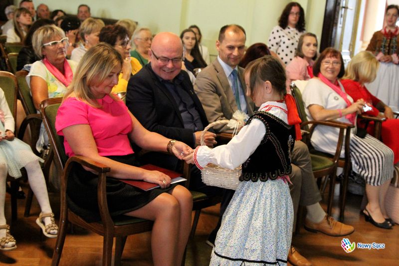 Życzenia Małgorzatom złożył prezydent Nowego Sącza Ryszard Nowak. – Drogie Małgorzaty, drogie perły, drogie Margerity: cieszę się, że po raz szósty jestem z wami. Obiecuję, że nadal będę uczestniczył w spotkaniach Małgorzat w następnych latach. Mam nadzieję, że będzie to spotkanie cykliczne i to nie tylko w skali miejskiej. Patrzę na uśmiechnięte Małgorzaty, życzę wam wszystkiego dobrego. Miejmy nadzieję, że w następnych latach również będziemy uczestniczyć w takim radosnym spotkaniu, święcie Małgorzat. Święta Małgorzata jest patronką Nowego Sącza, ale to wy jesteście nimi na co dzień. Mam nadzieję, że tak będzie przez długie, długie lata. Wszystkiego dobrego – powiedział prezydent Nowego Sącza, od którego każda z Małgorzat otrzymała perły. Rozdały je dziewczynki z Zespołu Regionalnego „Małe Podegrodzie”.