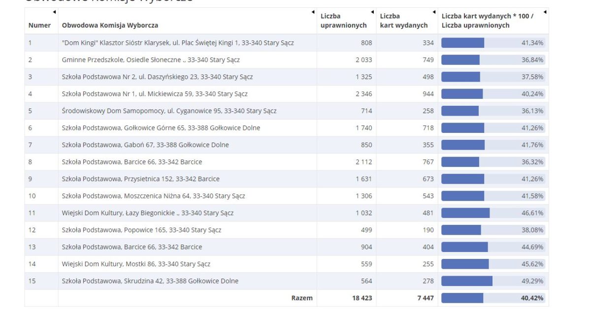 Frekwencja w Mieście i Gminie Stary Sącz do godziny 17:00 wyniosła 40,1%