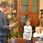 Burmistrz także przekazał dzieciom najlepsze życzenia bożonarodzeniowe oraz słodkie niespodzianki. Nie zabrakło rozmów o „zimowych planach”, nauce jazdy na nartach i piłce nożnej 🙂
