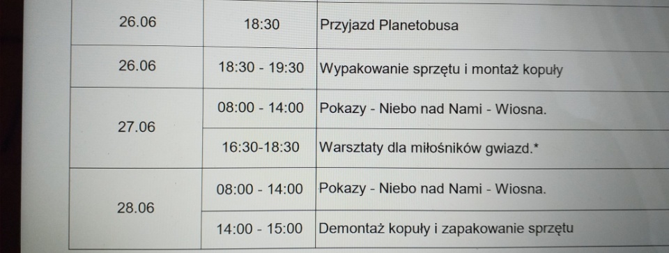Planetarium można zwiedzać całkowicie ZA DARMO, przez 2 dni w godzinach: