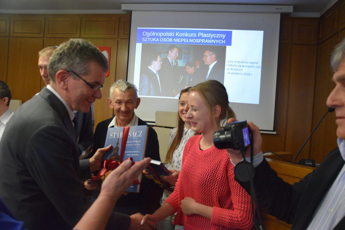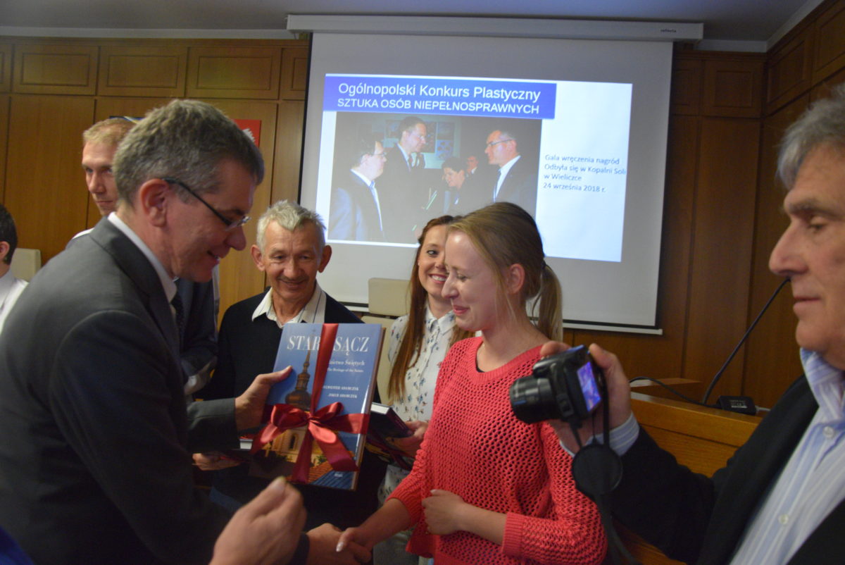 Uczestnicy Środowiskowego Domu Samopomocy w Cyganowicach zostali laureatami ogólnopolskiego konkursu plastycznego „NIEPODLEGŁA BEZ BARIER OD MORZA DO TATR „organizowanym przez PFRON Oddział Małopolski. Podczas wczorajszej sesji Rady Miejskiej, dyrektor krakowskiego oddziału PFRON Marta Mordarska wręczyła wszystkim laureatom nagrody. Na konkurs wpłynęło 200 prac.