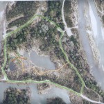Nowy odcinek ścieżki rowerowej ( na skanie -kolor zielony) został już oddany do użytku. Teraz przygotowywana jest koncepcja ścieżki przyrodniczej o długości 400 m na pomostach ( na skanie -kolor brązowy).