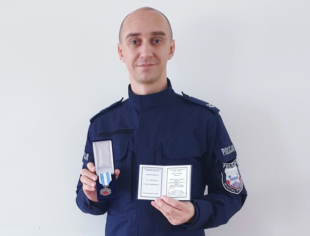 Policjant ze Starego Sącza odznaczony za honorowe krwiodawstwo