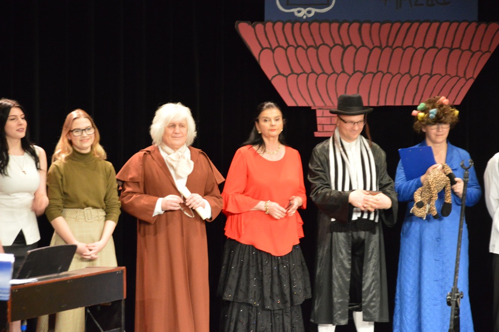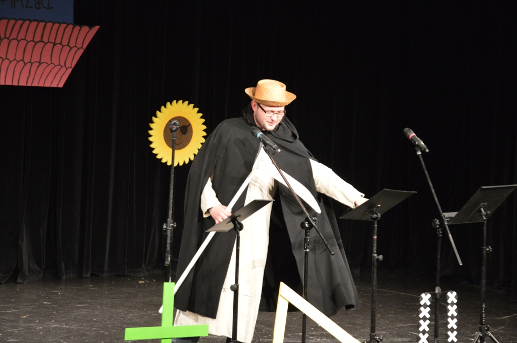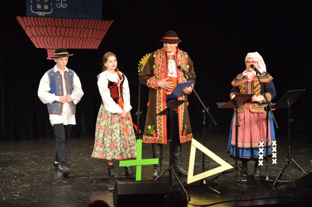 Skecze, piosenki, scenki kabaretowe, satyryczne monologi, cięte riposty raz po raz rozbawiały publiczność. Było o lokalnej polityce i nie tylko, było o budowie nowej siedziby urzędu i pieniądzach a raczej ich braku na budowę Sandecji. Prezentowany program był okazją do spojrzenia na otaczającą nas rzeczywistość w satyrycznym ujęciu. I to wszystko w krzywym zwierciadle.