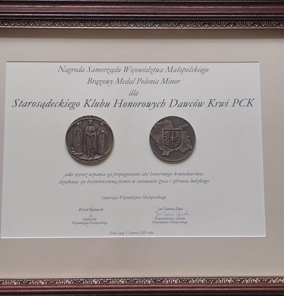 Polonia Minor dla Starosądeckiego Klubu Honorowych Dawców Krwi