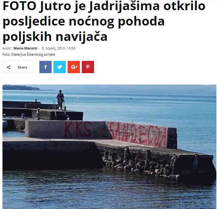 Polscy turyści, wśród których były także dzieci, urządzili imprezę na plaży w Srimie w Chorwacji. Wymalowali okoliczne ściany obraźliwymi napisami. Mieszkańcy miasta są zszokowani, sprawdzają też, czy kamienie rzucane przez Polaków nie uszkodziły zacumowanych w pobliżu łodzi -informuje sibenskiportal
