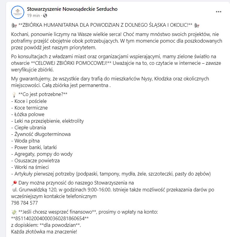 Zbiórkę uruchomiło także Stowarzyszenie Nowosądeckie Serducho