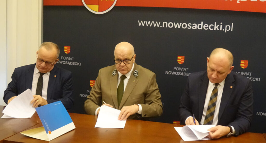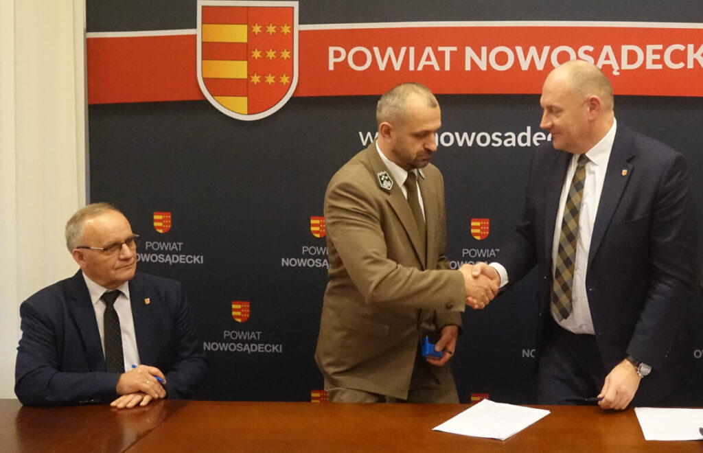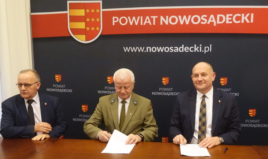 Porozumienie podpisali dzisiaj starosta nowosądecki Tadeusz Zaremba, wicestarosta Antoni Koszyk, nadleśniczy Nadleśnictwa Piwniczna-Zdrój Stanisław Michalik, nadleśniczy Nadleśnictwa Stary Sącz Rafał Tokarz, nadleśniczy Nadleśnictwa Gorlice Józef Legutko oraz nadleśniczy Nadleśnictwa Nawojowa Wojciech Kurzeja.