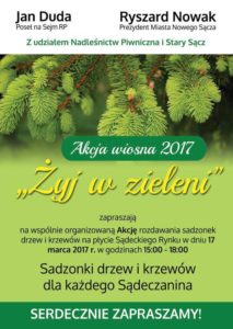 Wspólnikami posła w projekcie „Wiosna 2017 – żyj w zieleni” są Nadleśnictwa Piwniczna i Stary Sącz oraz prezydent miasta Ryszard Nowak.