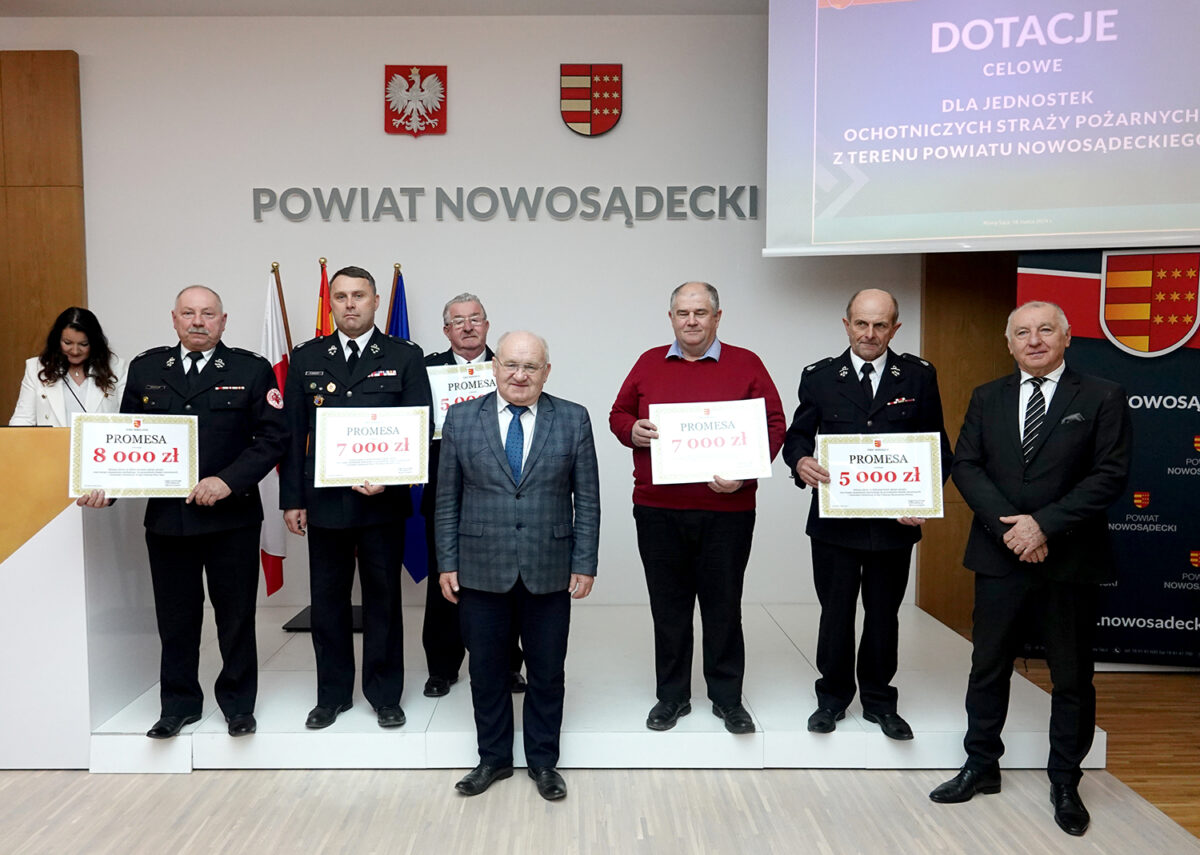 Ochotnicza Straż Pożarna w Librantowej – 5 000 zł, Ochotnicza Straż Pożarna w Głębokiem: – 4000 zł, Ochotnicza Straż Pożarna w Niskowej – 8 000 zł, Ochotnicza Straż Pożarna w Grybów – Biała Wyżna – 2 000 zł, Ochotnicza Straż Pożarna w Gołkowicach Górnych – 10 000 zł, Związek Ochotniczych Straży Pożarnych RP Oddział Powiatowy w Nowym Sączu – 132 000 zł,