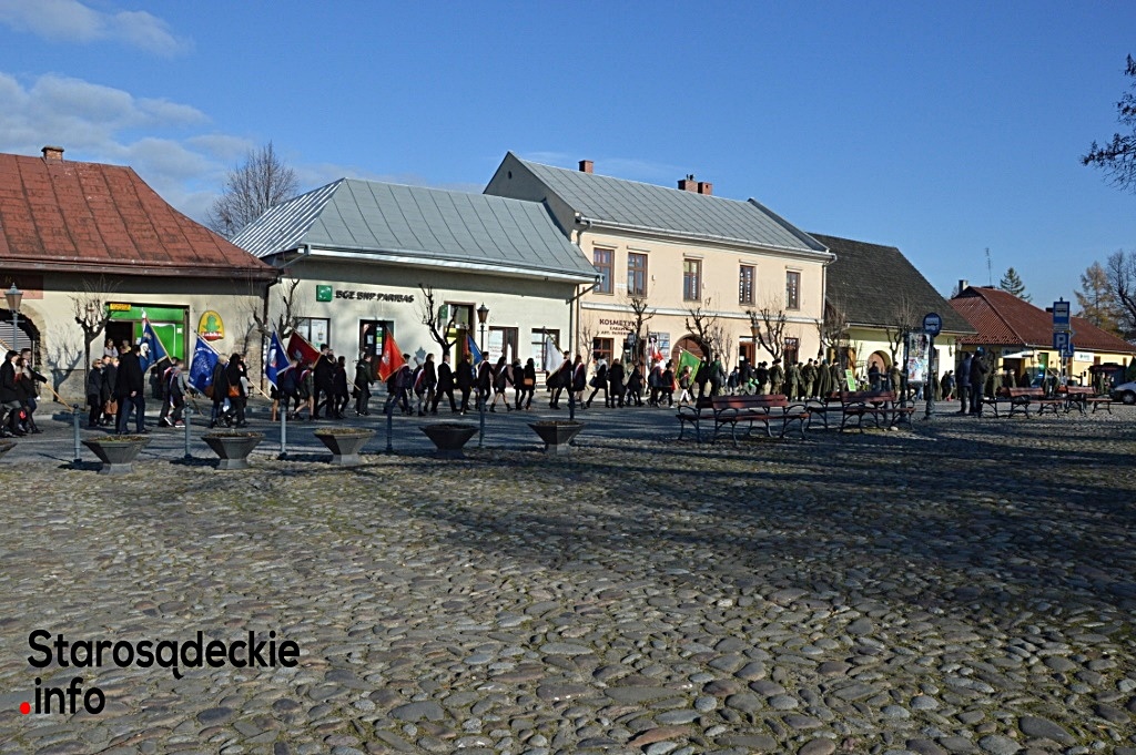W patriotycznej manifestacji uczestniczyli mieszkańcy miasta i gminy, władze samorządowe, duchowieństwo, członkowie organizacji społecznych i politycznych, druhowie OSP, nauczyciele i młodzież szkolna, harcerze. Pochód z pocztami sztandarowymi i innymi uczestnikami przemarszu, od „Sokoła” na Rynek, do kościoła św. Elżbiety i na nowy cmentarz prowadziły Tamburmajorki oraz Miejska Orkiestra Starego Sącza.
