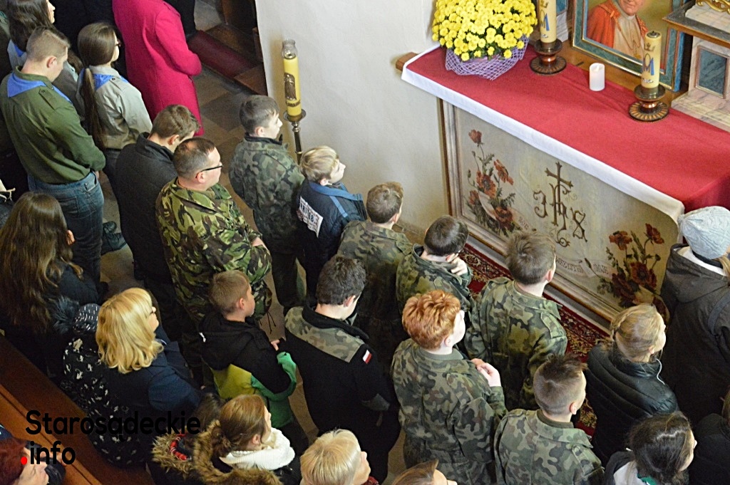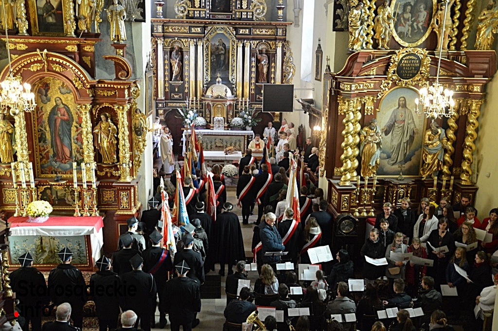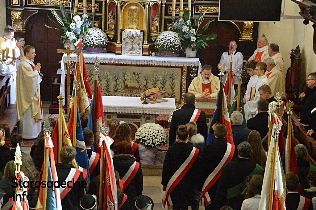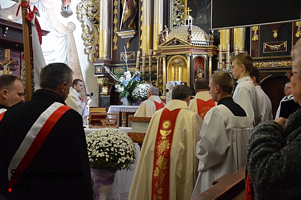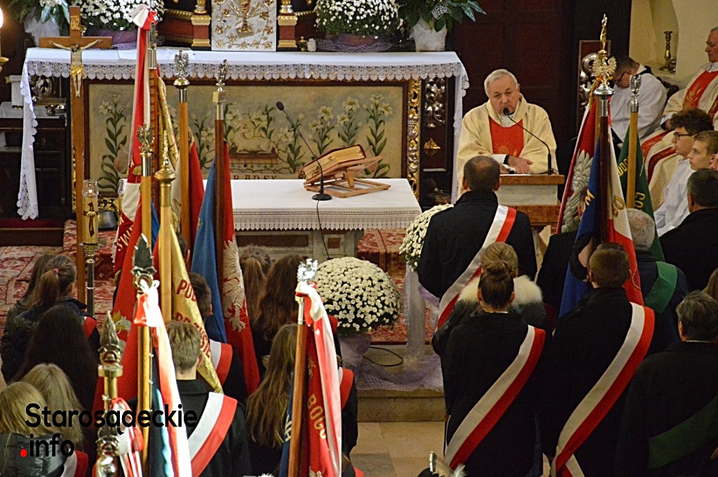 –Dzisiejsza uroczystość ma w sobie wielkie bogactwo –mówił ks proboszcz Marek Tabor – jest jednym wielkim dziękczynieniem, za to że Polska po tylu latach niewoli mogła sama zaistnieć. Nie codziennie uświadamiamy sobie jak wiele zawdzięczamy tym, którzy złożyli najwyższą cenę, cenę życia dla dobra Ojczyzny. (…) Chciałbym zadedykować Wam dzisiaj jedno proste zdanie, z wiersza Adama Asnyka: „Prawdziwa mądrość niechaj Was pogodzi”.Wymaganie, żądanie, życzenie -to bardzo oczywiste -tylko na prawdziwej mądrości można budować dobro wspólne. Mądrość ma wiele źródeł. (…) Mądrość można budować pod warunkiem, że jest się miłośnikiem prawdy. Bycie miłośnikiem prawdy to wcale nie jest droga wygodna. Do tego potrzeba męstwa. Do tego potrzeba wielkiego samozaparcia. Czasem trzeba wystąpić wbrew sobie. (…) Dzisiaj wspominamy niezwykłe wydarzenia sprzed 98 lat (…) Rozgrabiły nas potężne mocarstwa (…) Nie oszczędzano polskich żołnierzy wysyłając ich na straconą misję. Ilu wracało? (…) Szli i walczyli o naszą wolność, o naszą dzisiejszą wolność.