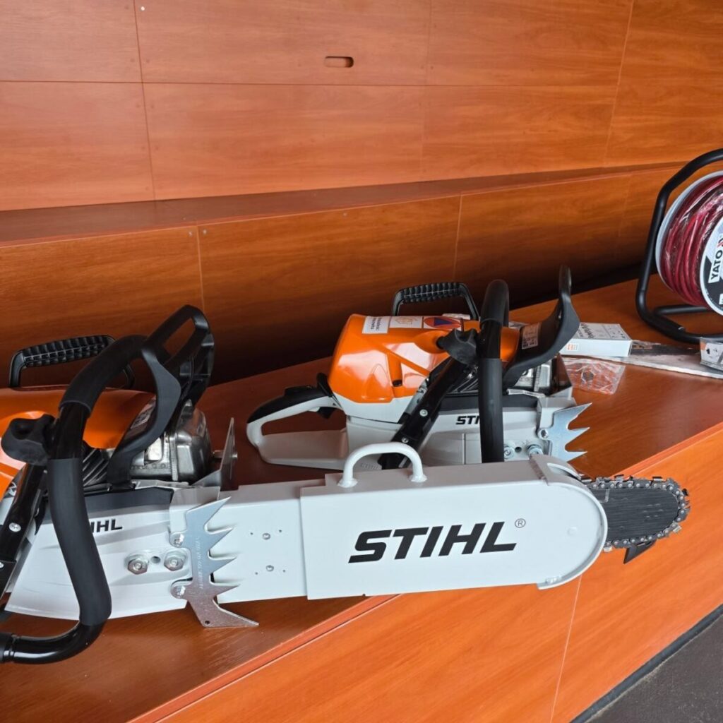 - 5 pilarek ratowniczych STIHL MS 462 C-M, przeznaczonych do szybkiego usuwania powalonych drzew, elementów konstrukcyjnych oraz odblokowywania dróg ewakuacyjnych po burzach, powodziach czy katastrofach.