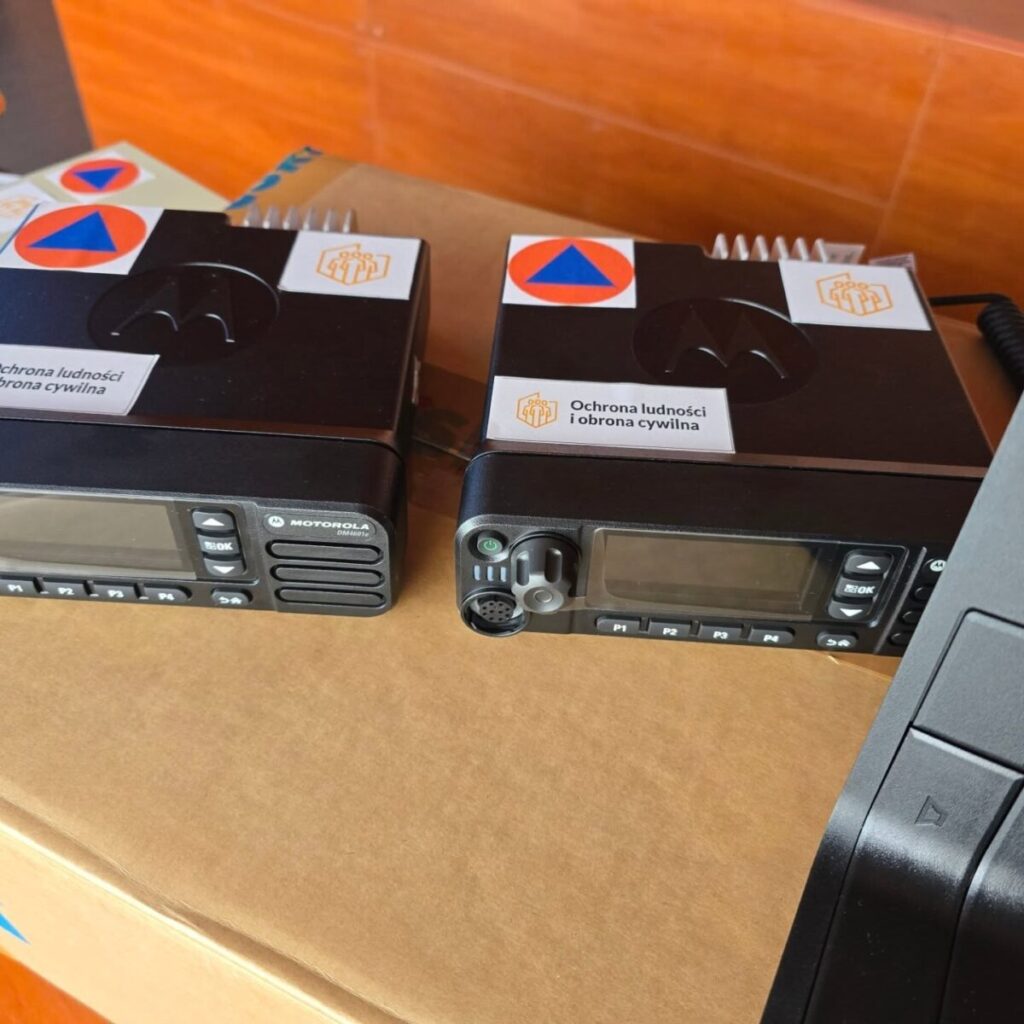 Istotnym elementem inwestycji było wdrożenie systemu łączności radiowej, obejmującego ponad 80 radiotelefonów oraz konsole dyspozytorskie dla Urzędu Miejskiego i jednostek organizacyjnych. Zakupione radiotelefony Motorola DP 4601e (nasobne) oraz DM 4601e (pojazdowe) zapewniają niezawodną, cyfrową komunikację, lokalizację GPS, odporność na trudne warunki oraz szybkie przekazywanie informacji między zespołami w terenie a centralą. System ten znacząco poprawia koordynację działań, skraca czas reakcji i podnosi poziom bezpieczeństwa służb.