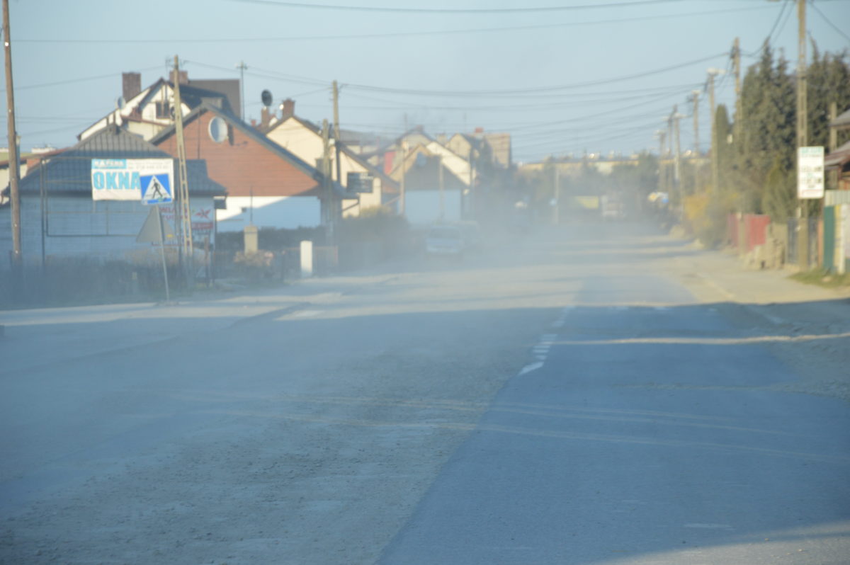 Kurz za autami, które bardzo często przejeżdżają z większą prędkością, opada bardzo powoli. Gołym okiem widać, że unoszący się pył z drogi osiada na ogrodzeniach, a żywopłoty i okna domów są białe. Ale mieszkańcy mówią, że uciążliwy kurz wdziera się też do mieszkań.