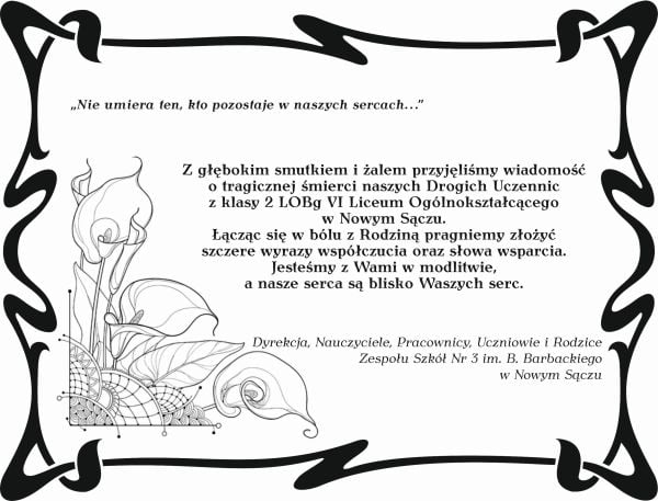 Rodzina, przyjaciele, nauczyciele, a także koleżanki i koledzy pożegnają w najbliższy czwartek (18 marca) tragicznie zmarłą 18-letnią Julię, która zginęła w niedzielny wieczór na obwodnicy Starego Sącza. Nie jest znana jeszcze data pogrzebu jej 17-letniej koleżanki Weroniki, która także w ten feralny dzień jechała fordem drogą krajową nr 87. Julka i Weronika były uczennicami Zespołu Szkół nr 3 im. Bolesława Barbackiego w Nowym Sączu. Obie chodziły do jednej klasy. Za rok miały zdawać egzamin maturalny.