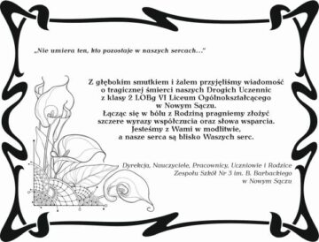 Rodzina, przyjaciele, nauczyciele, a także koleżanki i koledzy pożegnają w najbliższy czwartek (18 marca) tragicznie zmarłą 18-letnią Julię, która zginęła w niedzielny wieczór na obwodnicy Starego Sącza. Nie jest znana jeszcze data pogrzebu jej 17-letniej koleżanki Weroniki, która także w ten feralny dzień jechała fordem drogą krajową nr 87. Julka i Weronika były uczennicami Zespołu … Czytaj dalej Rodzina i przyjaciele pożegnają tragicznie zmarłą Julię i Weronikę