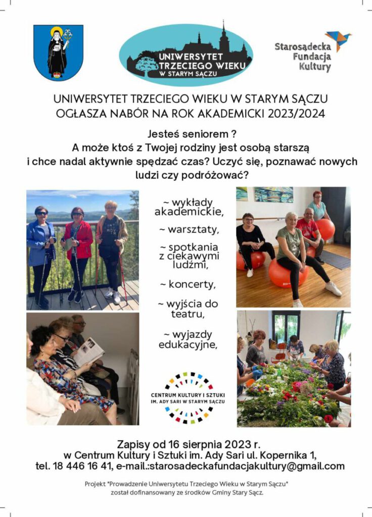 Już 16 sierpnia 2023 roku ruszą zapisy na Uniwersytet Trzeciego Wieku w Starym Sączu, w którym możecie rozwijać swoje pasje.